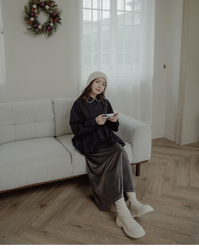 燈芯絨光澤造型直筒長裙 三色售 S/M