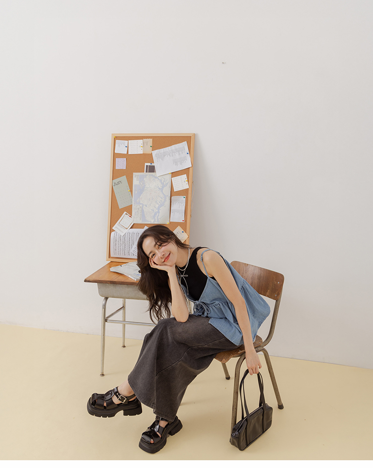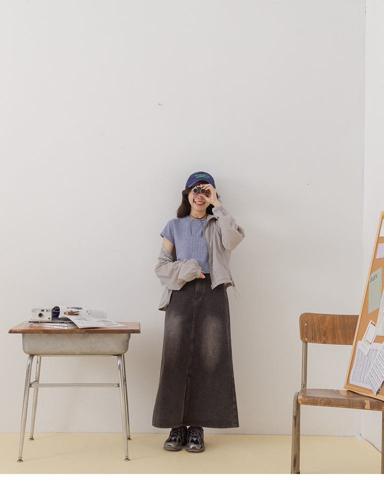 前開衩設計直筒牛仔長裙 S/M/L