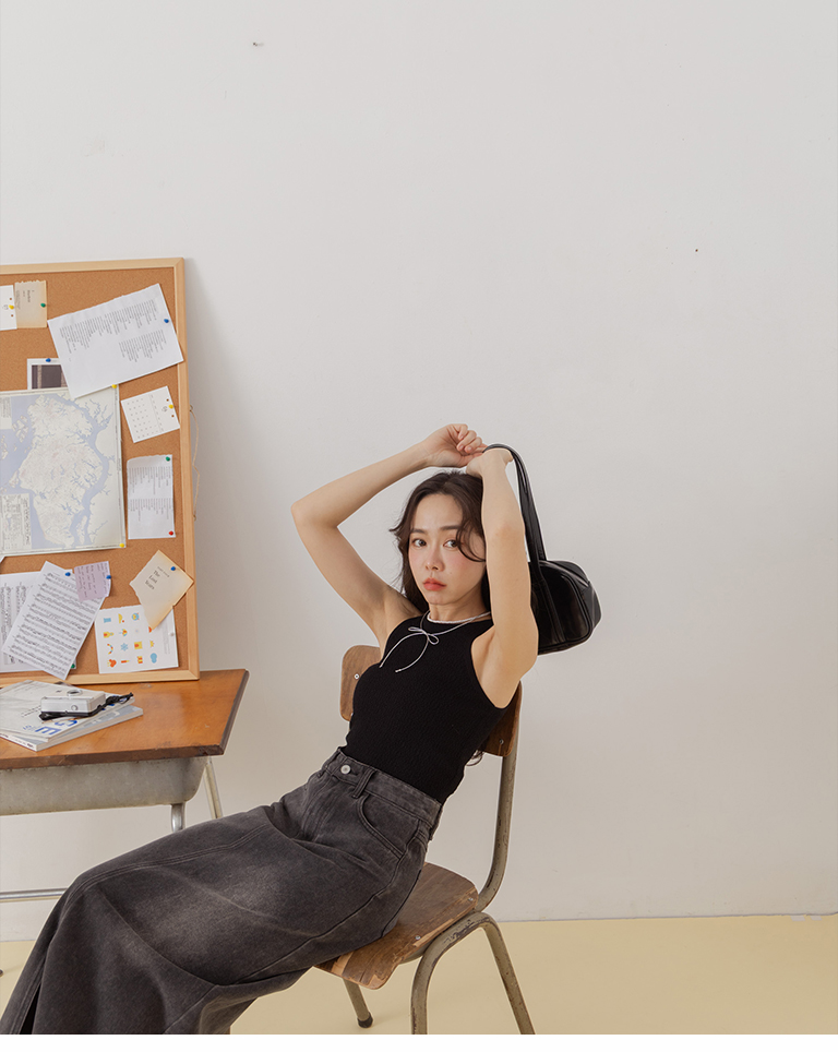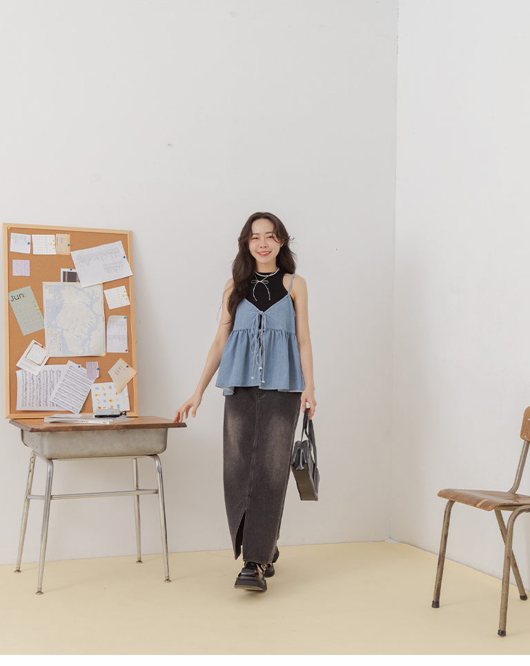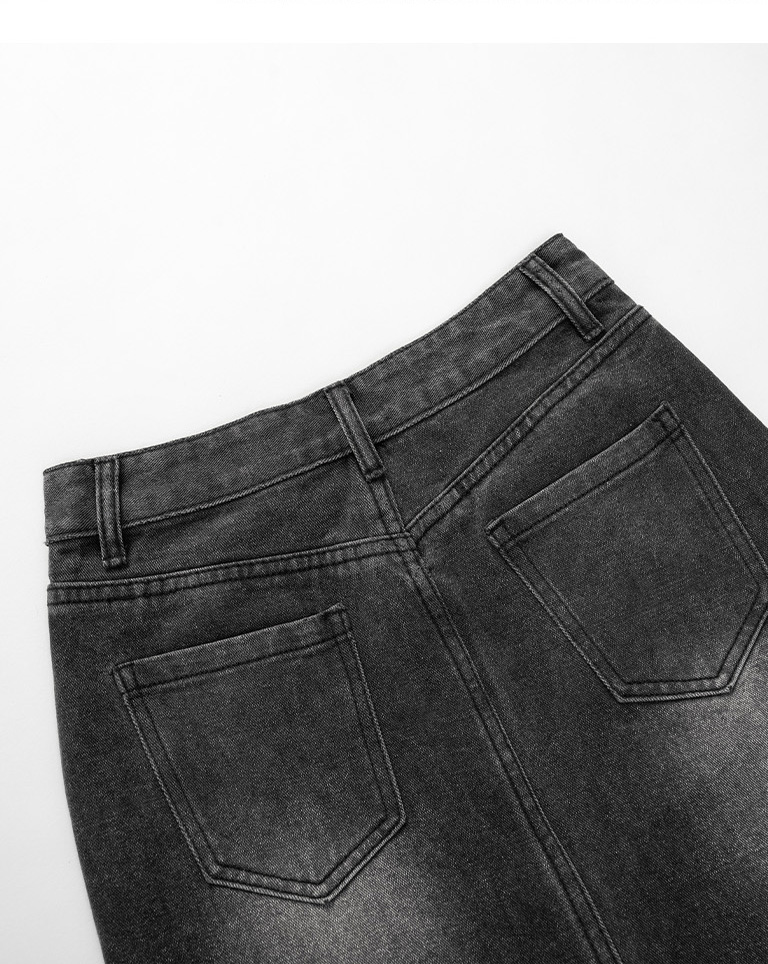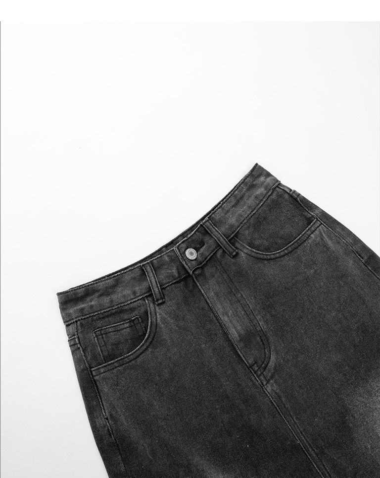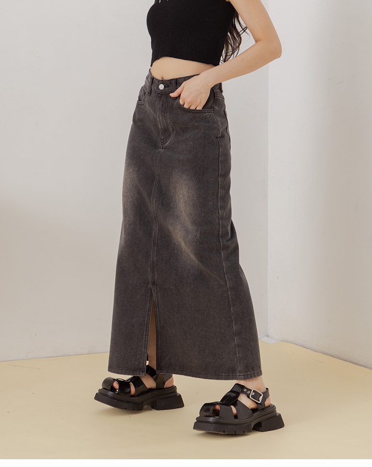 前開衩設計直筒牛仔長裙