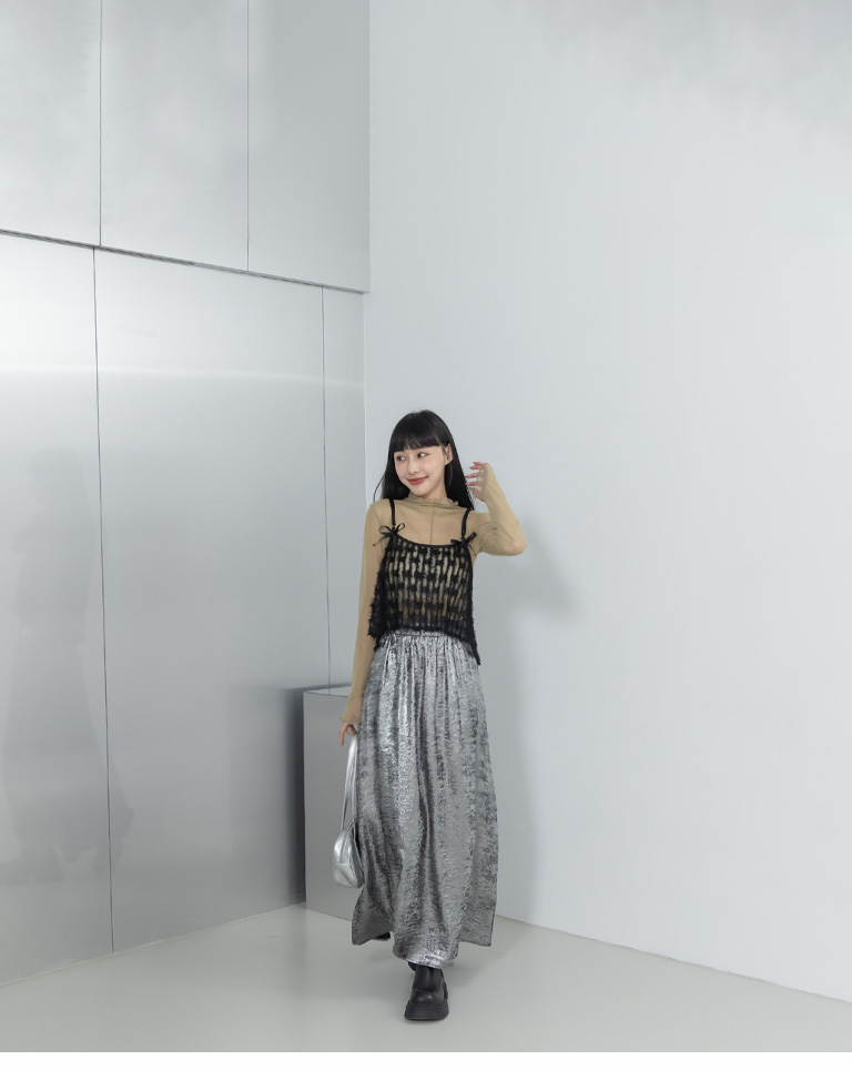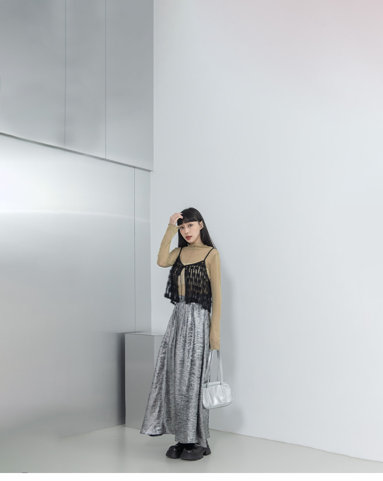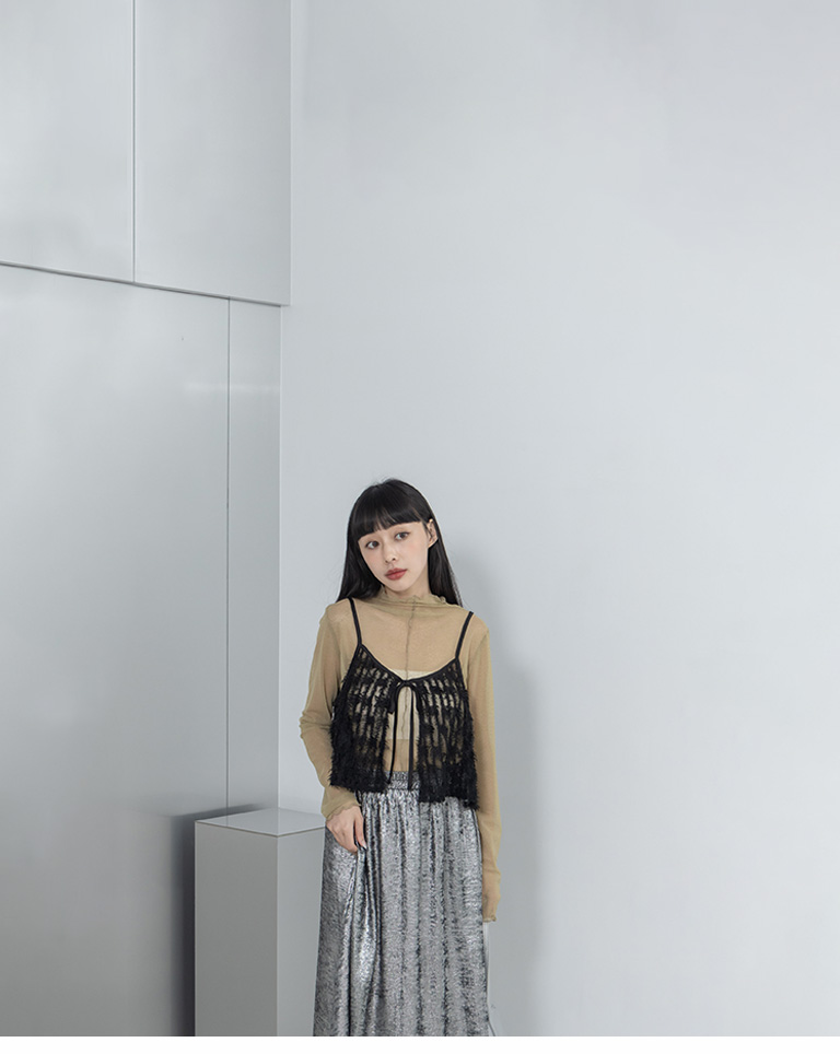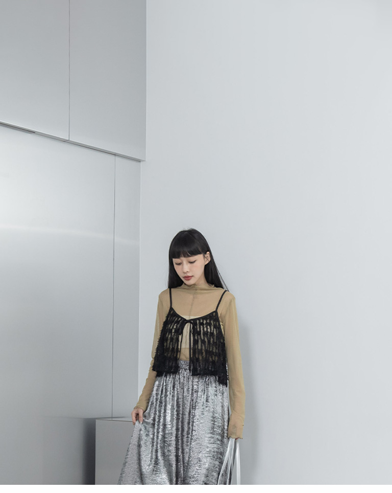 S~L身形實測!分尺寸皺皺木耳邊透膚高領長袖上衣