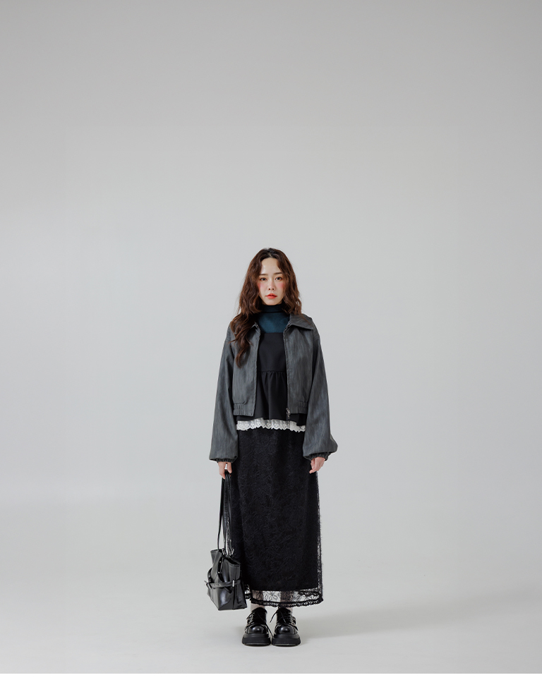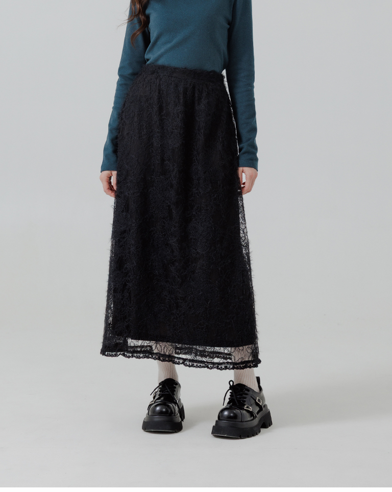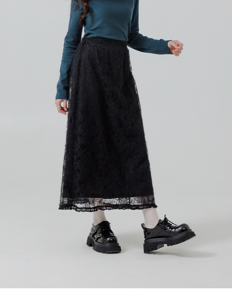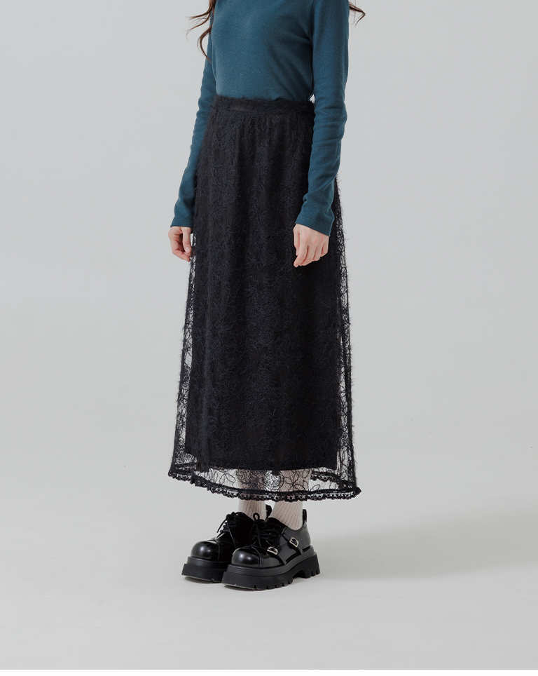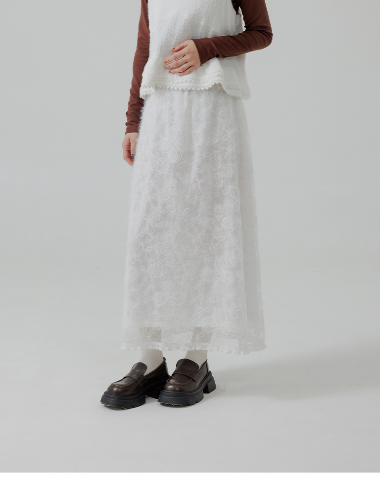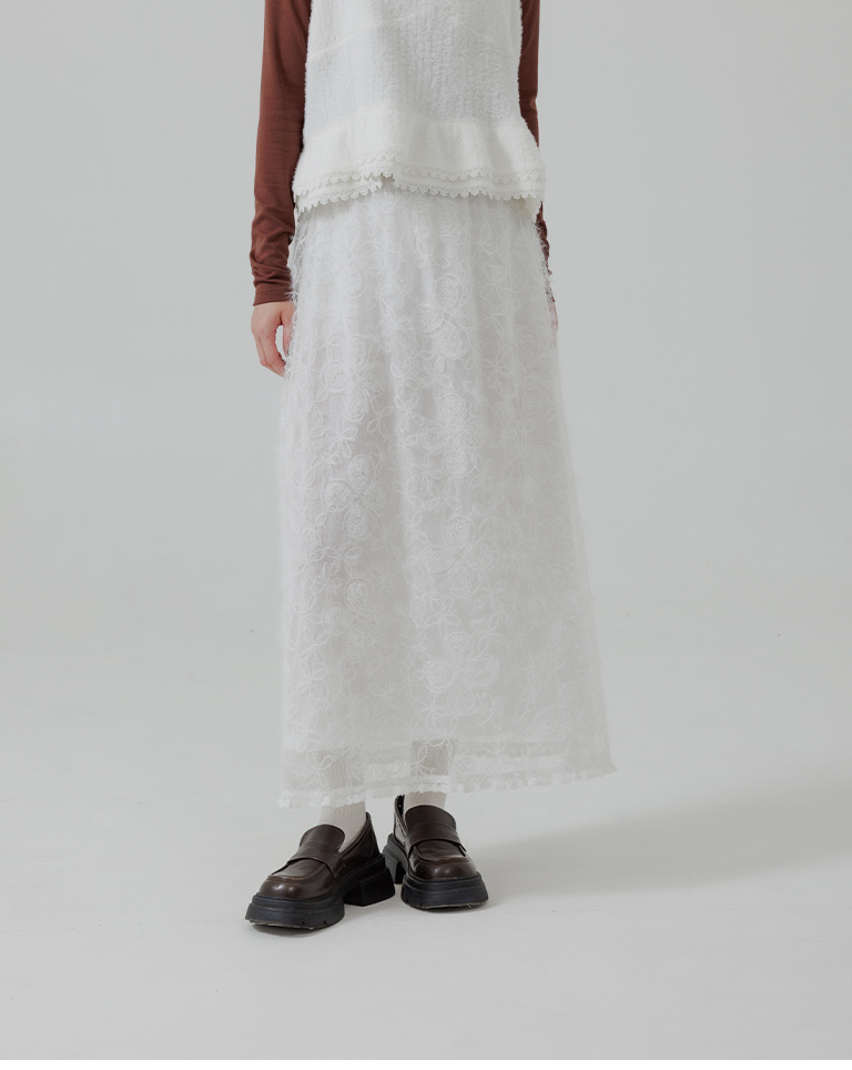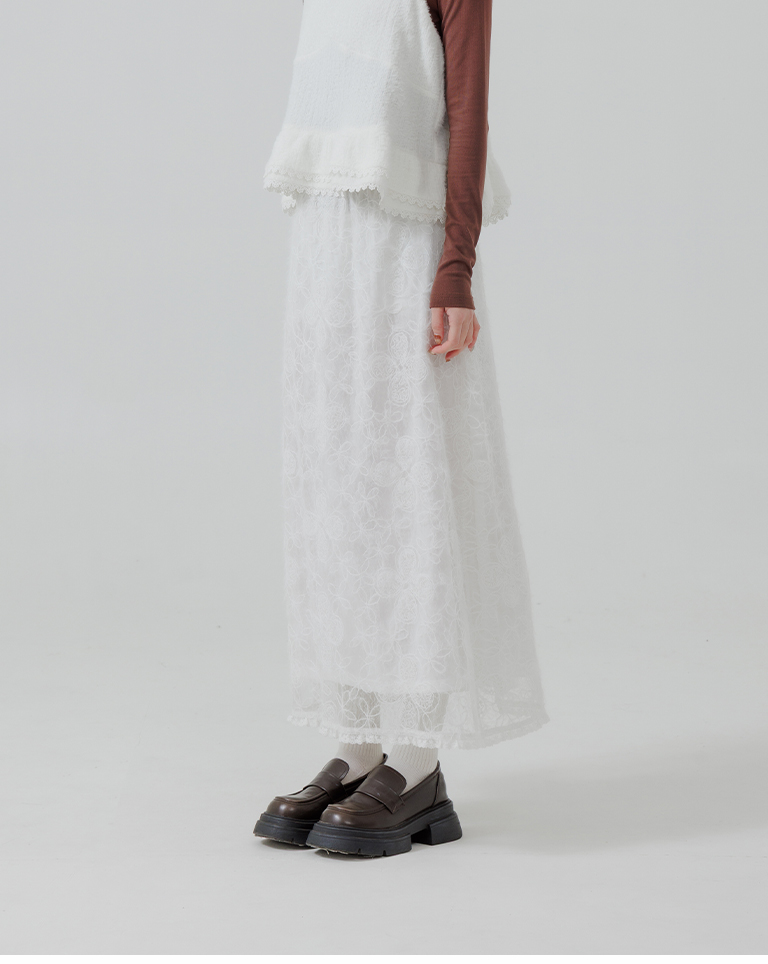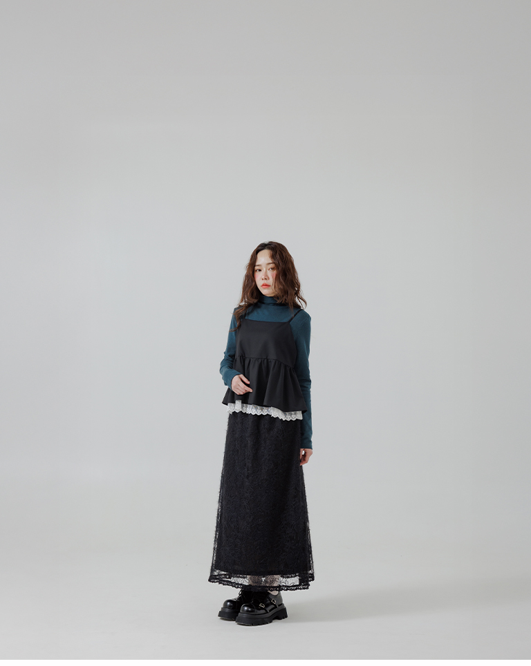 立體緹花蕾絲雙層造型長裙 兩色售 S/M