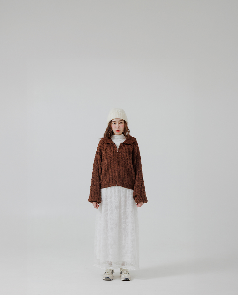 S~L身形實測!分尺寸皺皺木耳邊透膚高領長袖上衣
