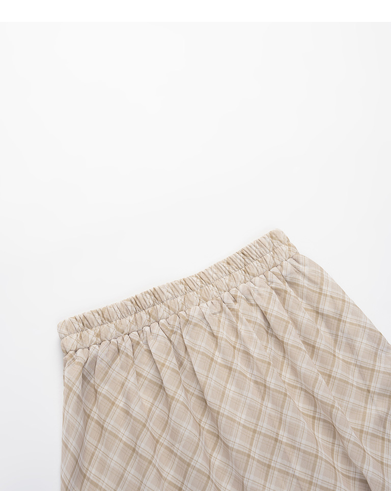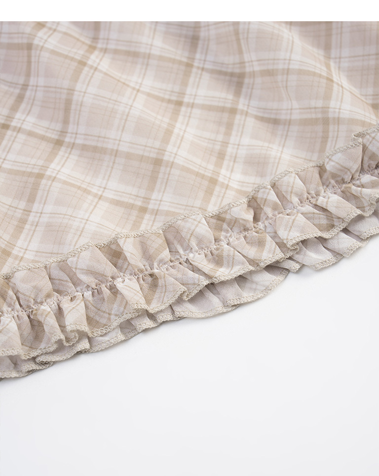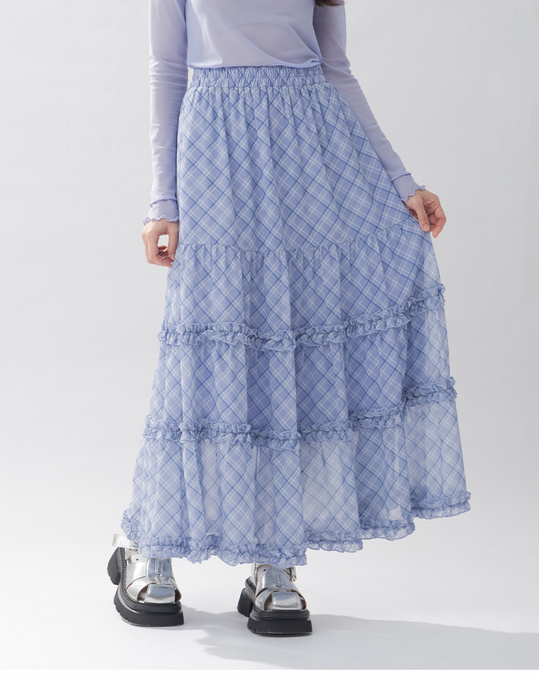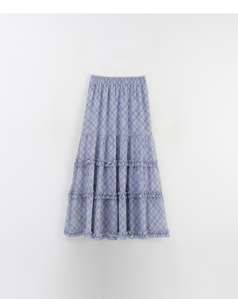 格紋荷葉多層次雪紡長裙
