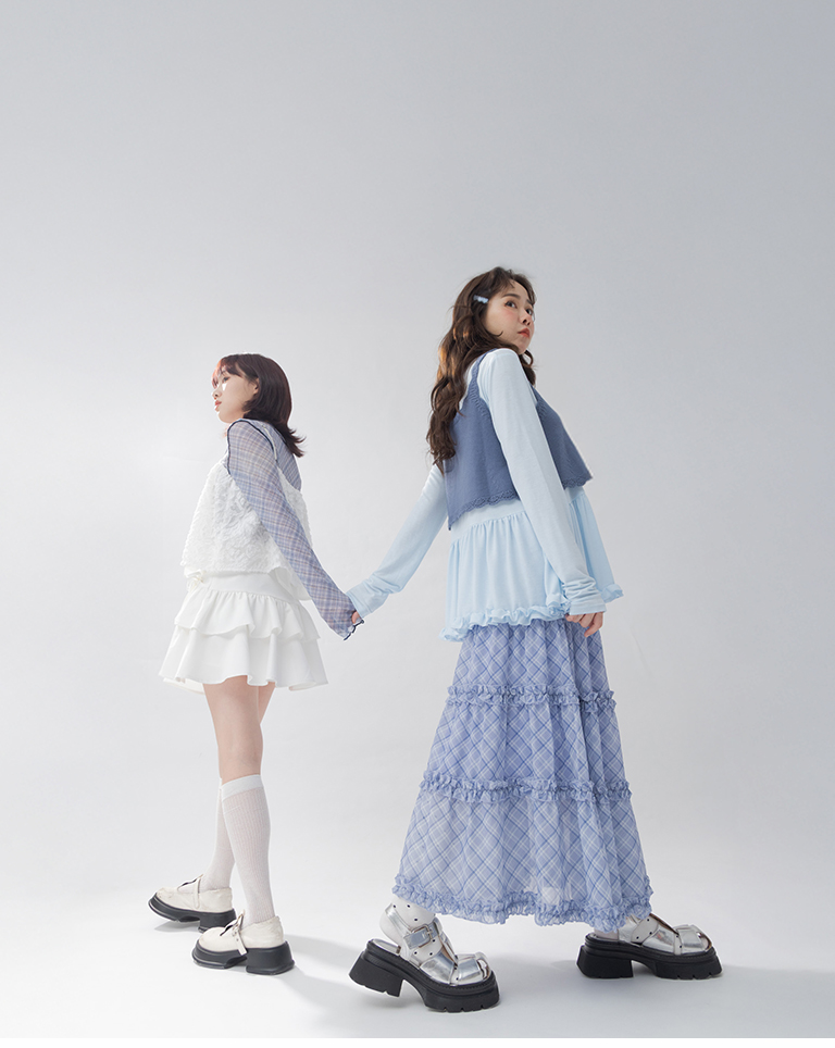 上身搭配素面襯衫 展現氣質甜美Look!