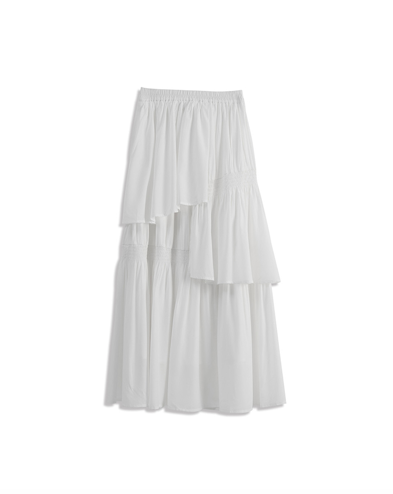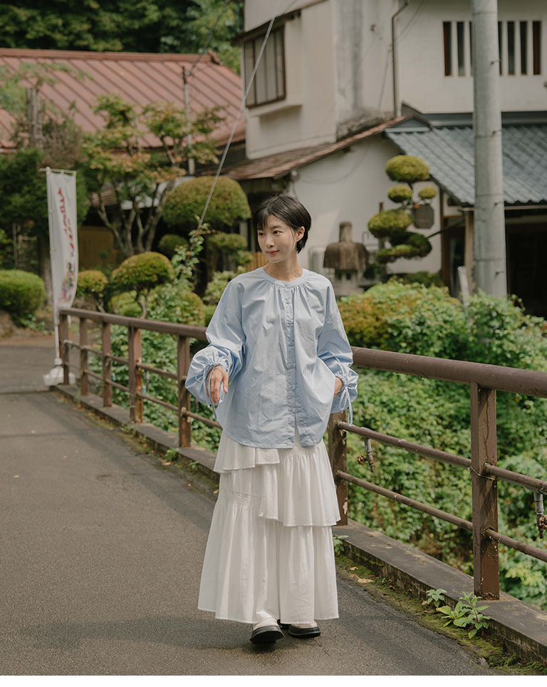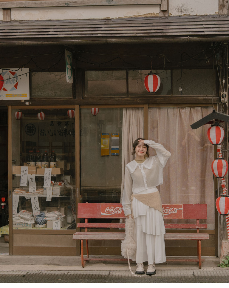 S~L身形實測!分尺寸皺皺木耳邊透膚高領長袖上衣
