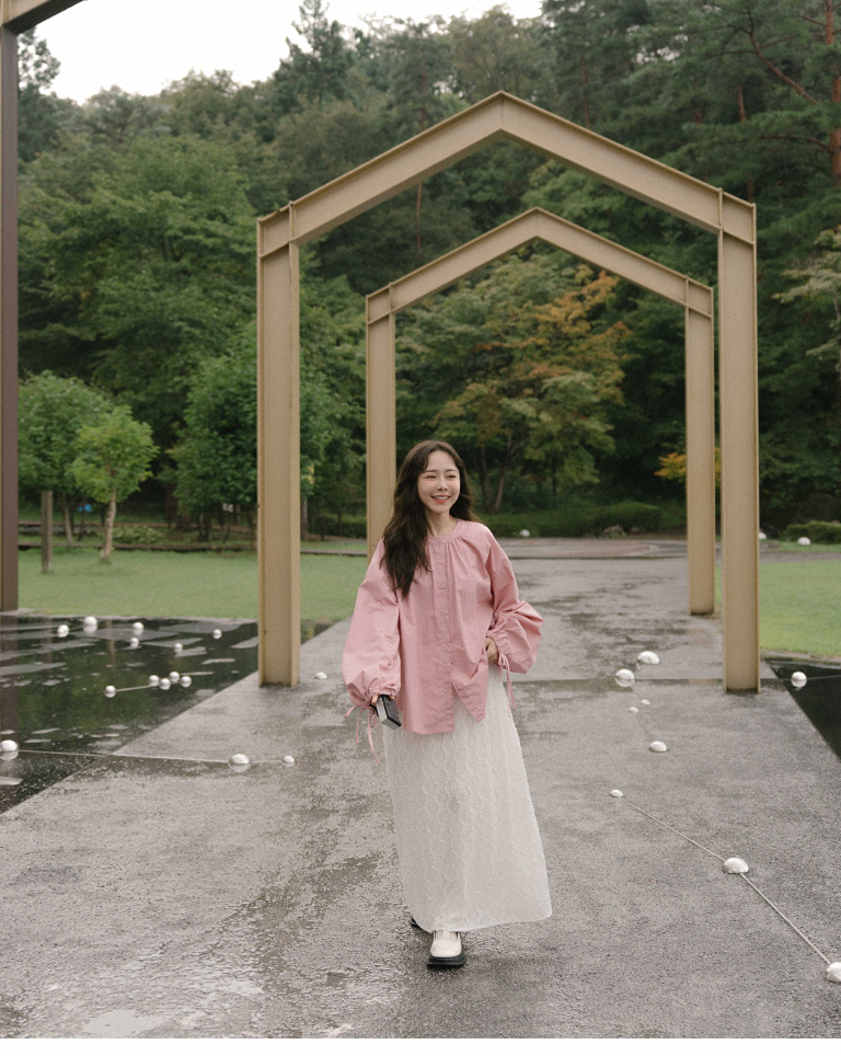 S~L身形實測!分尺寸皺皺木耳邊透膚高領長袖上衣