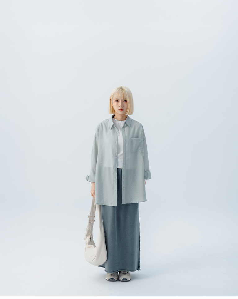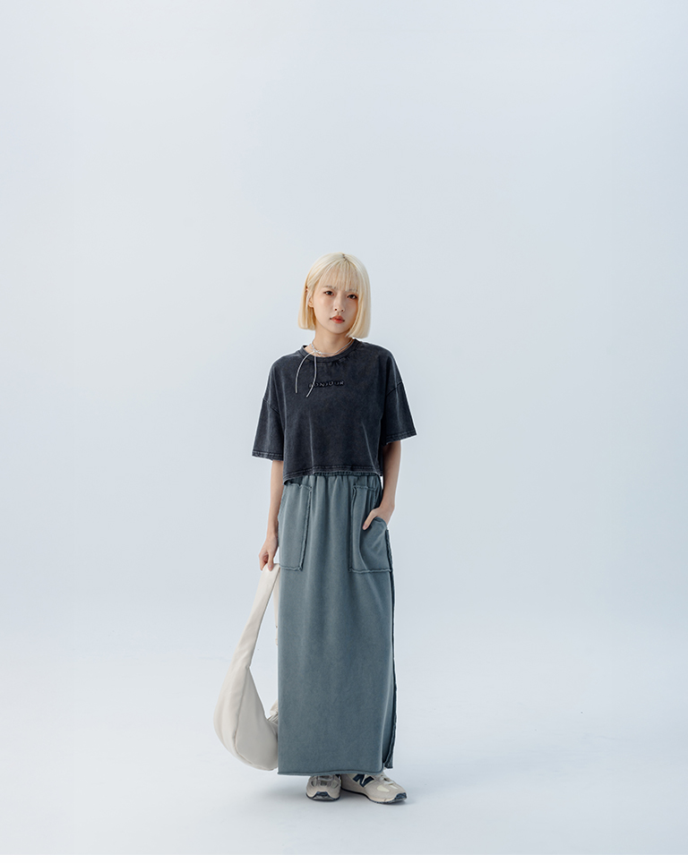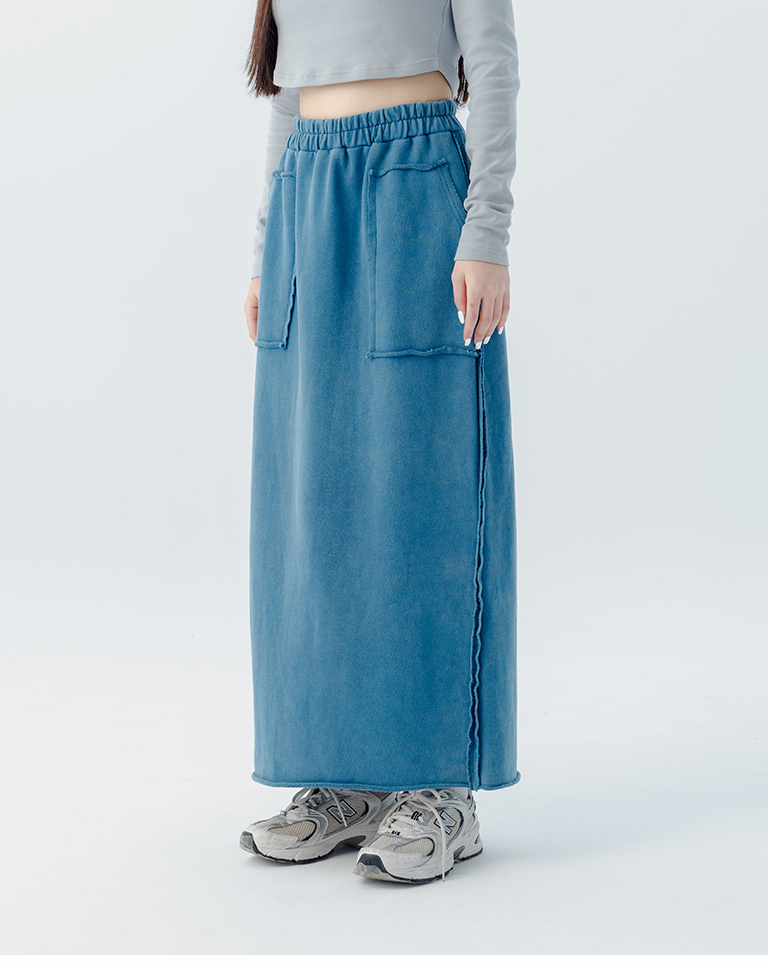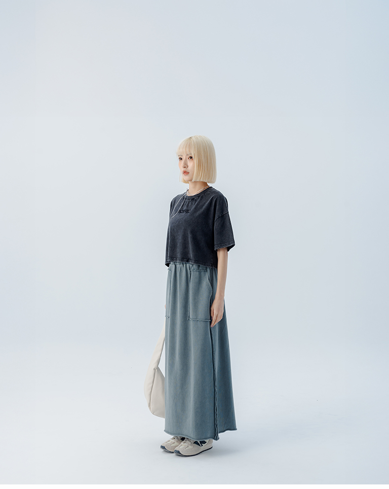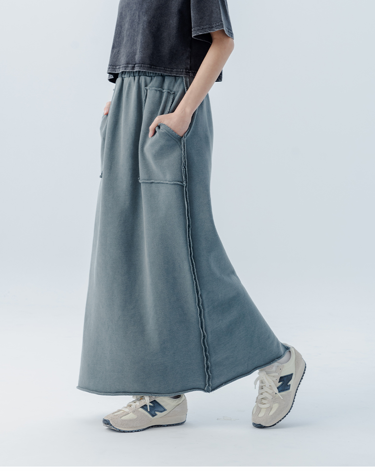 休閒不收邊洗水棉質長裙