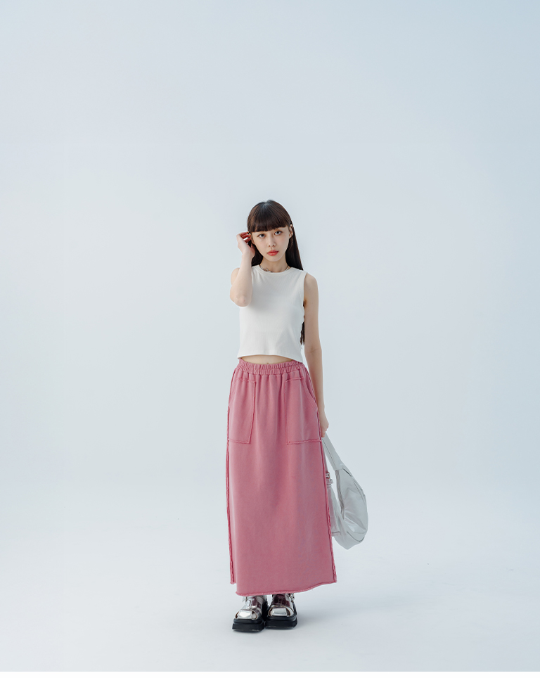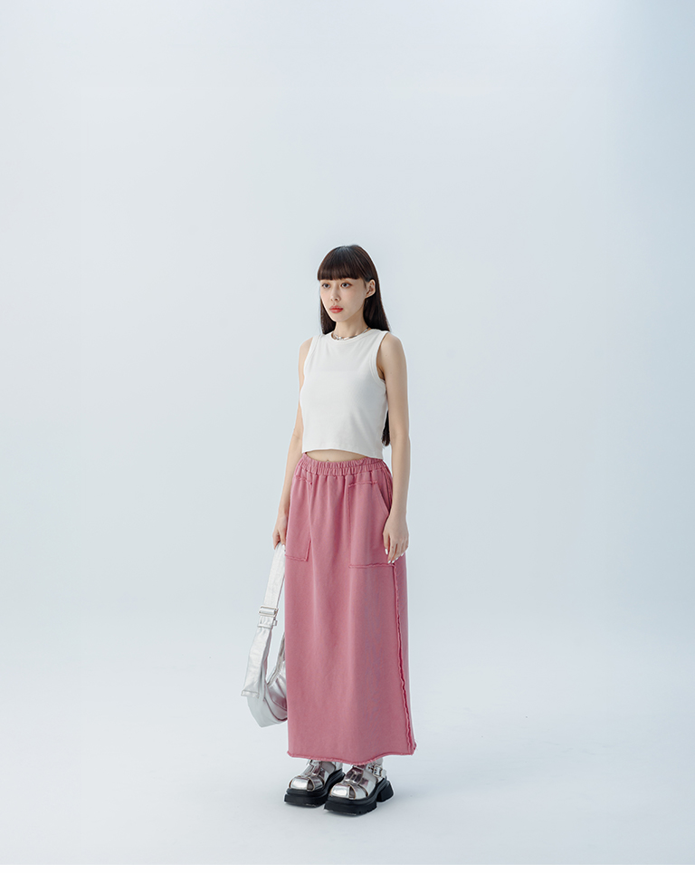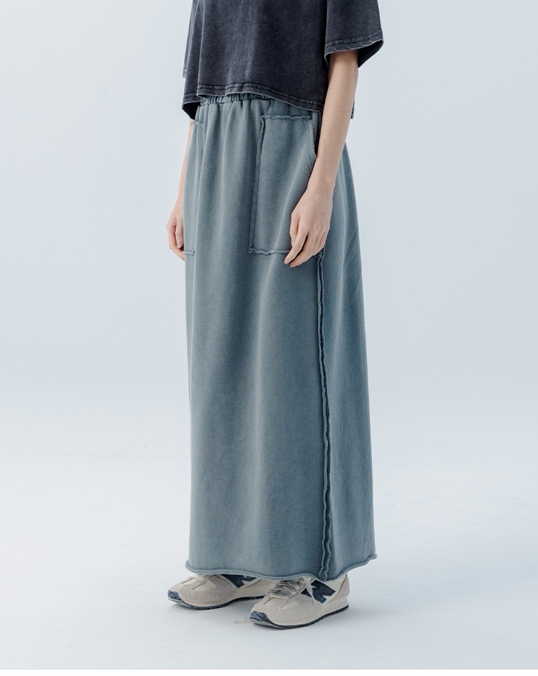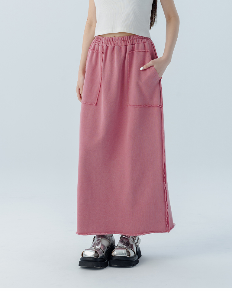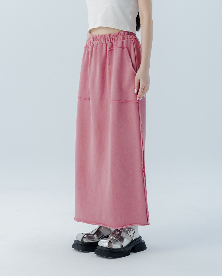 休閒不收邊洗水棉質長裙 三色售