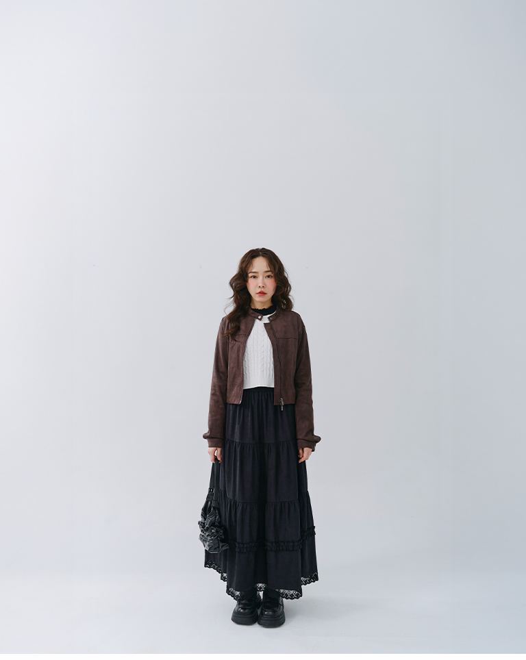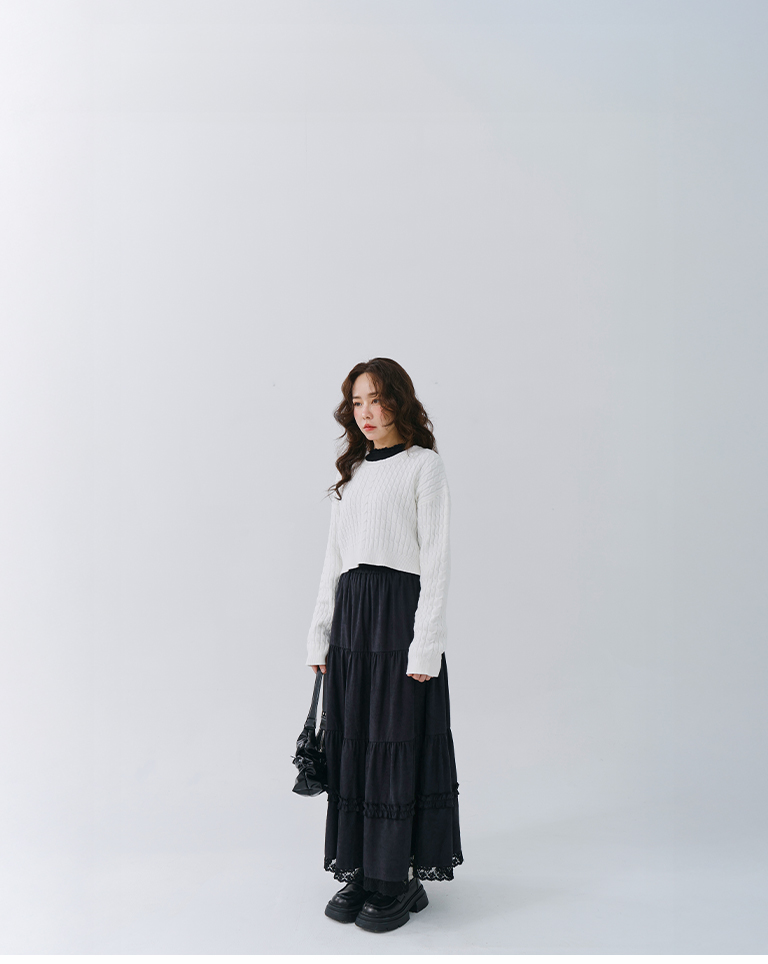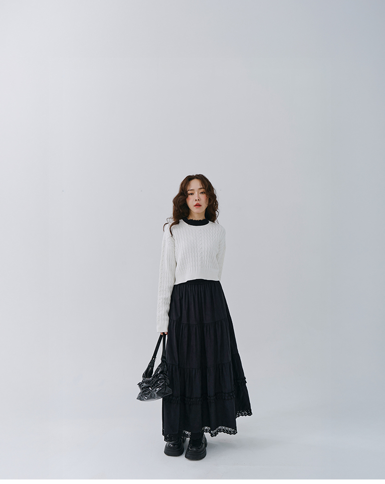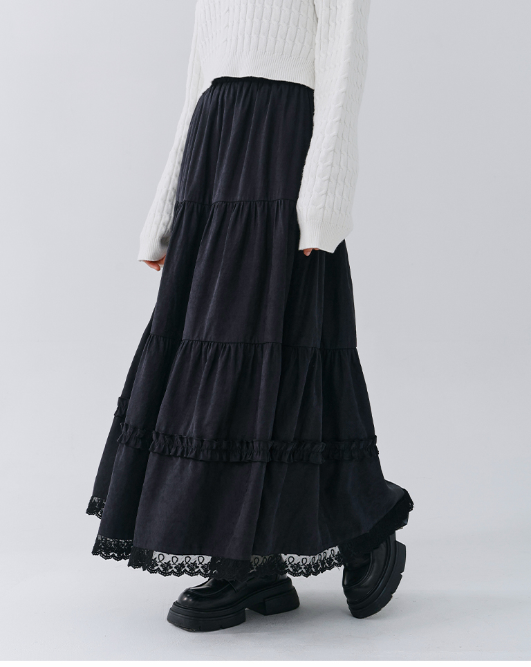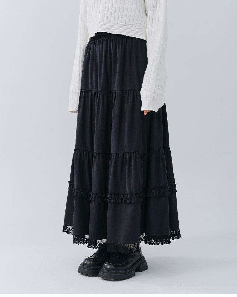 蜜桃絨蕾絲內磨毛蛋糕長裙 兩色售