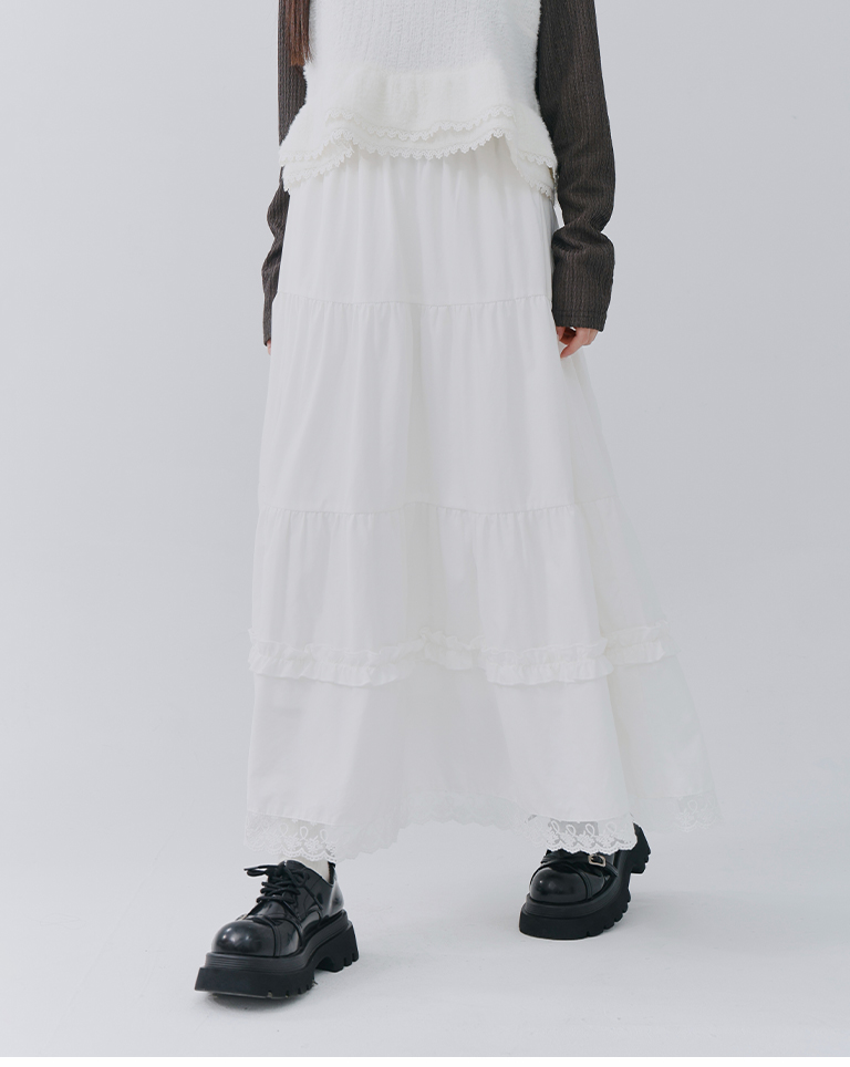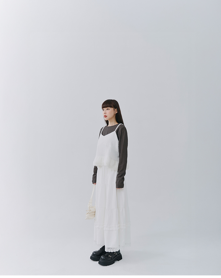 裙子下擺採用精緻的蕾絲花邊