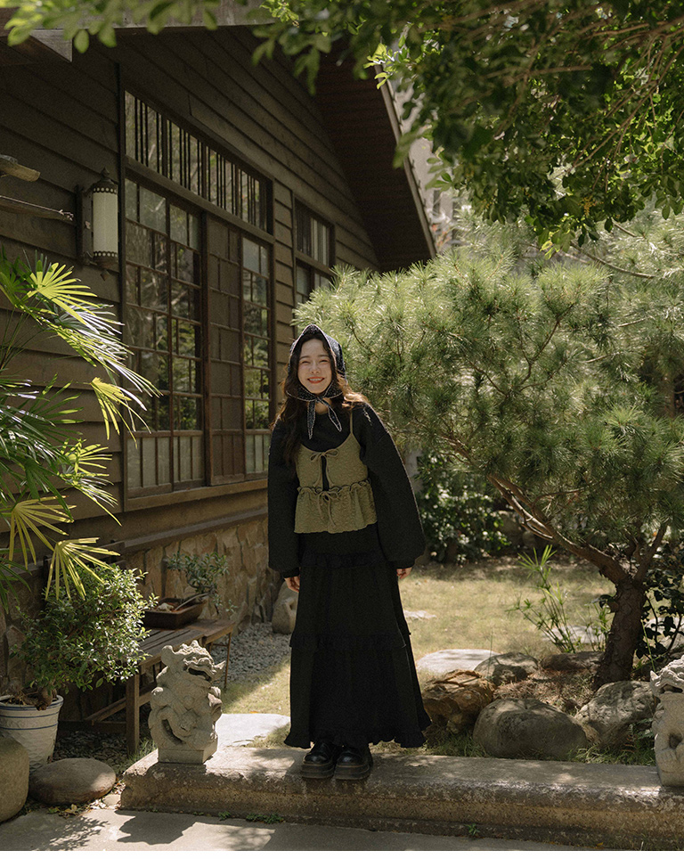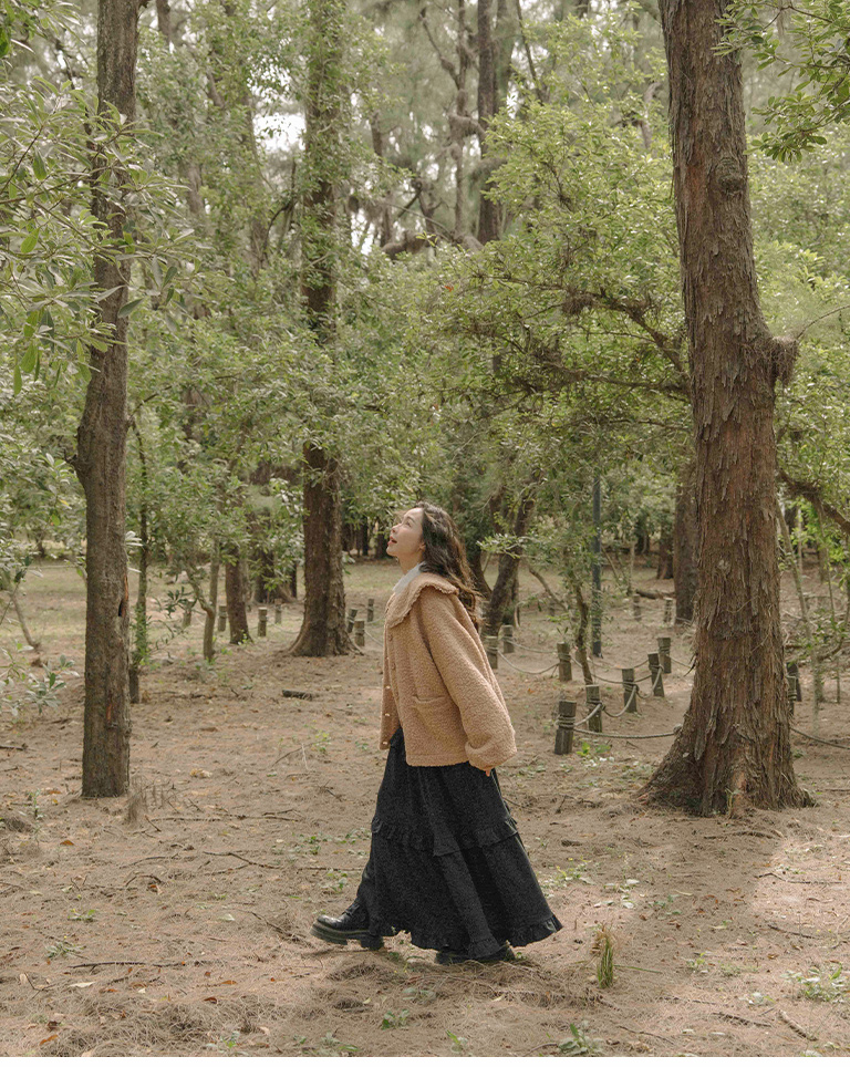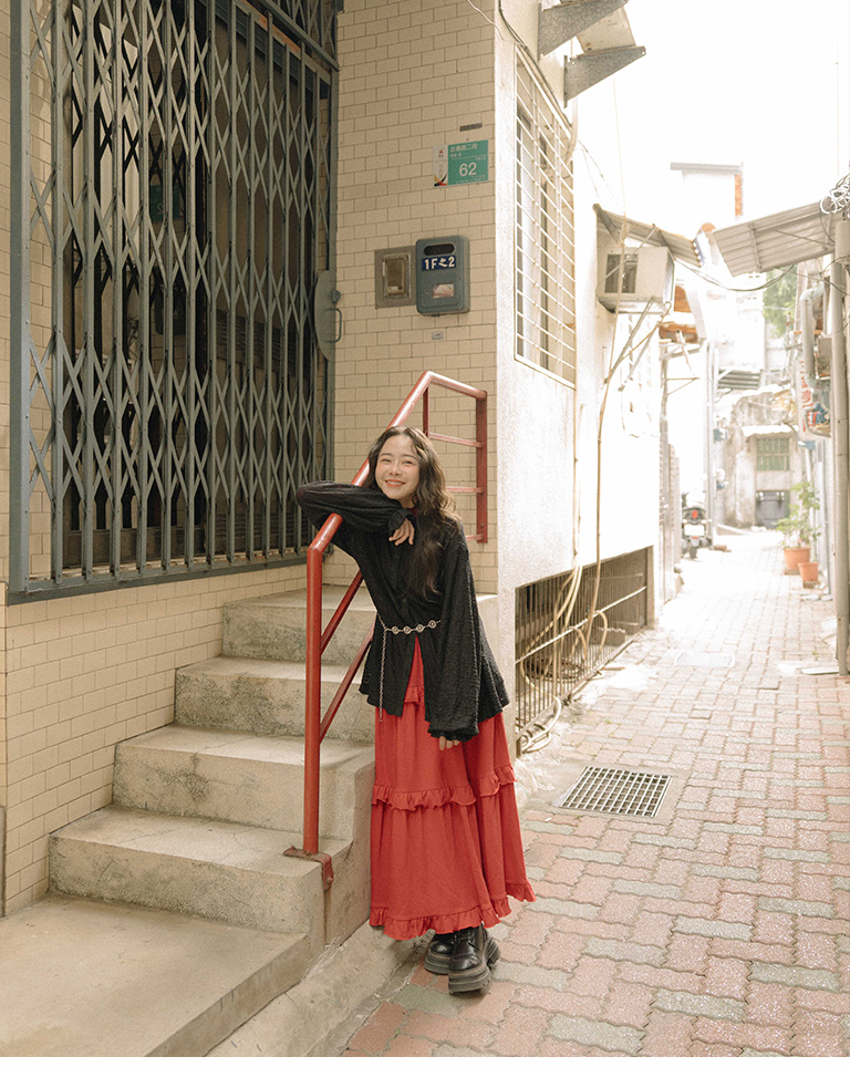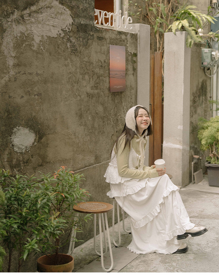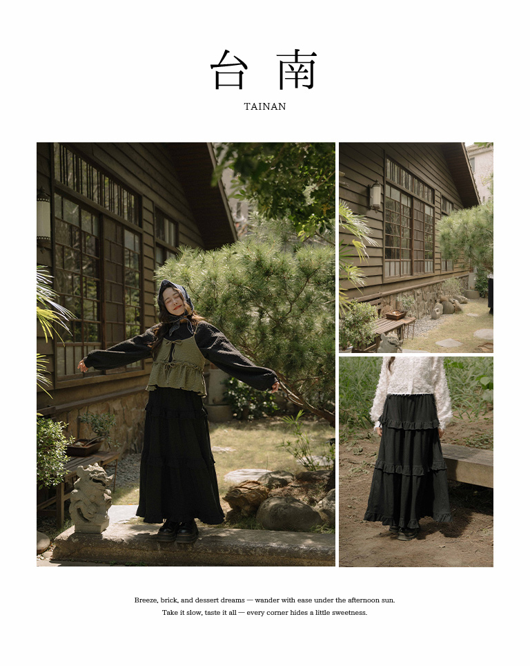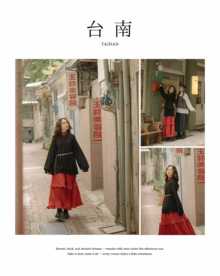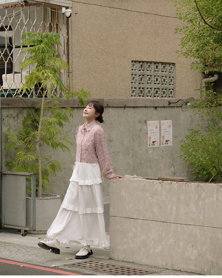 S~L身形實測!分尺寸皺皺木耳邊透膚高領長袖上衣