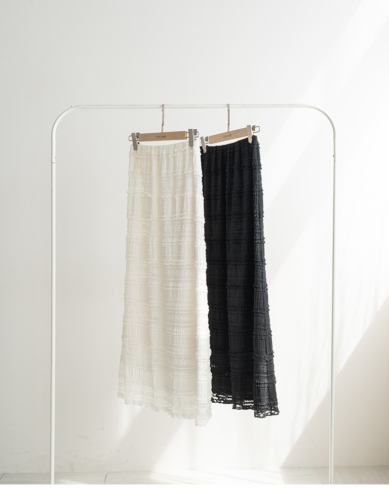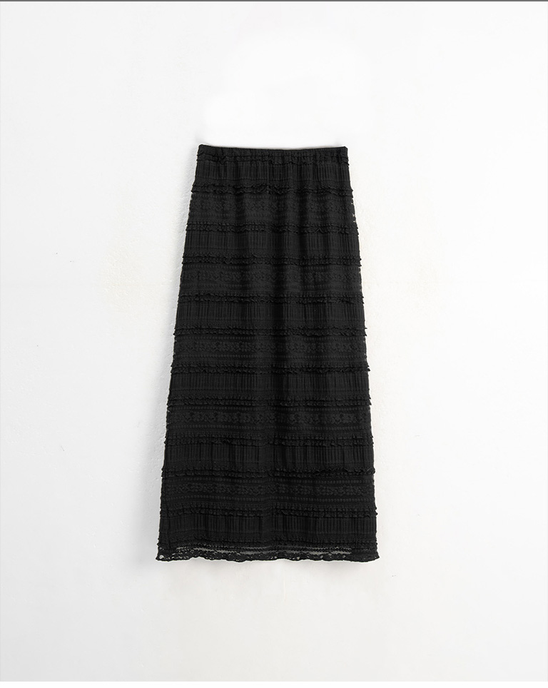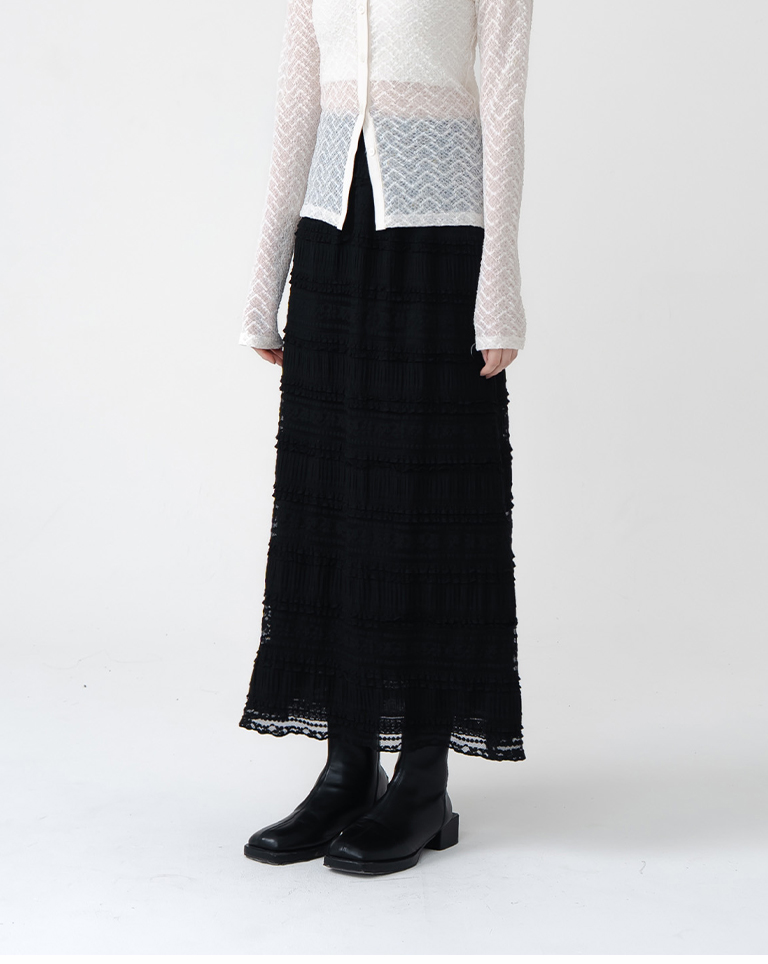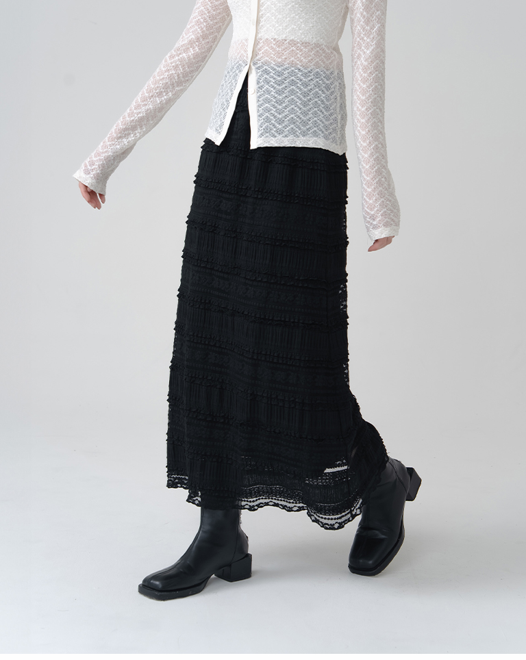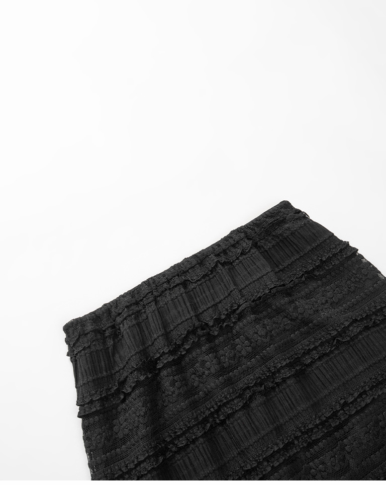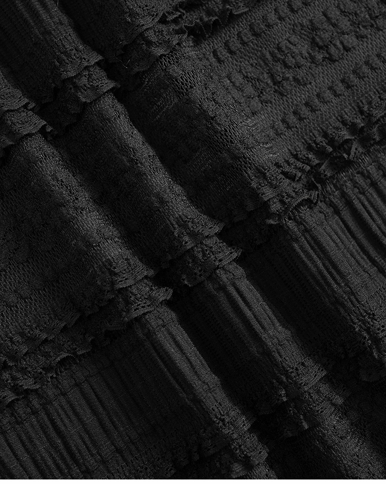 多層荷葉鏤空蕾絲緹花長裙-黑 S/M