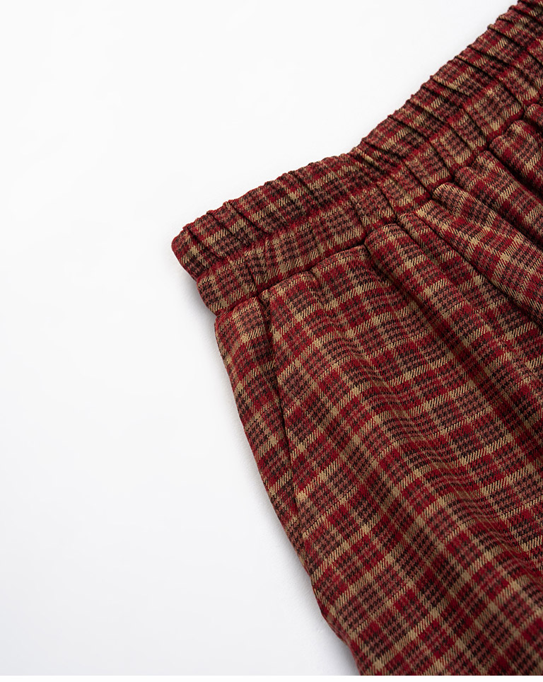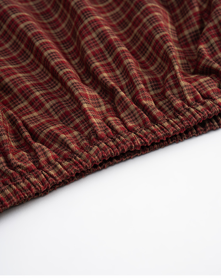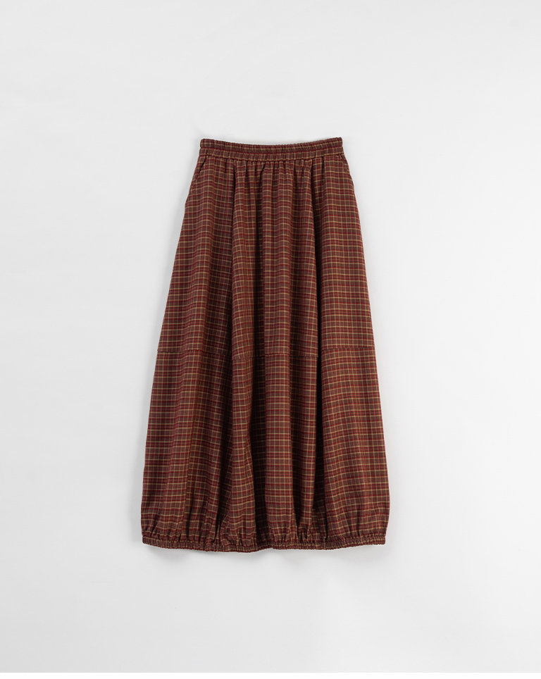 格紋剪接設計氣球長裙