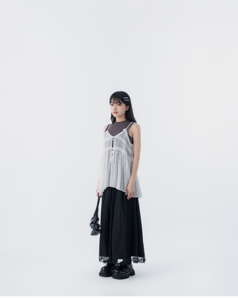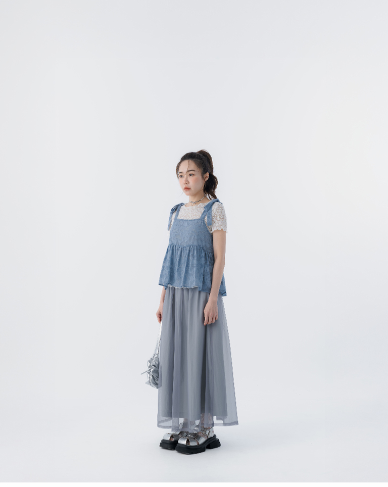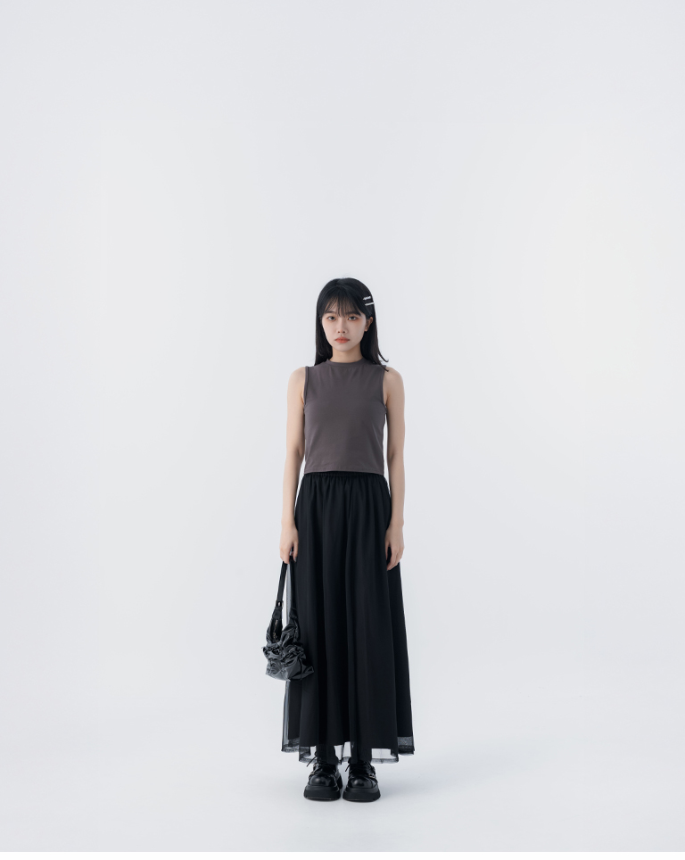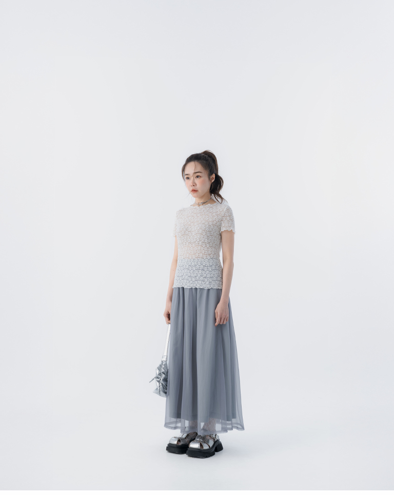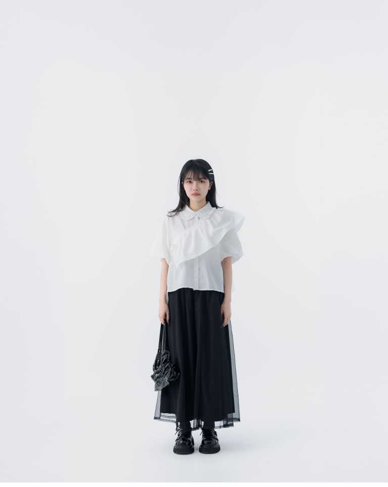 S~L身形實測!分尺寸皺皺木耳邊透膚高領長袖上衣