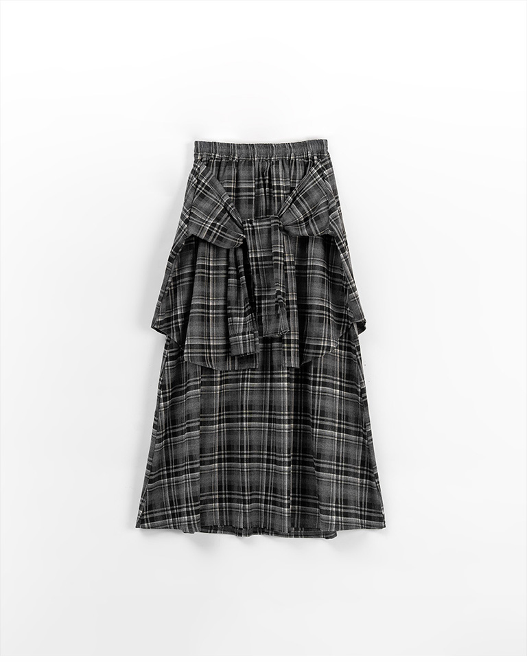 格紋磨毛襯衫綁腰假兩件長裙 兩色售