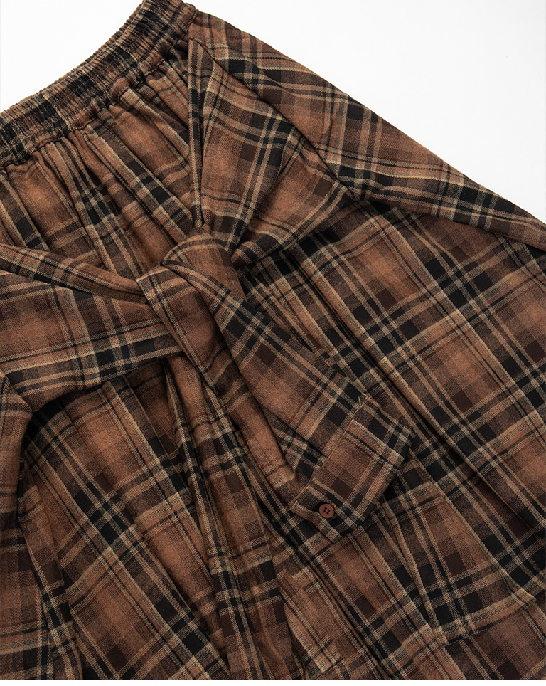 格紋磨毛襯衫綁腰假兩件長裙
