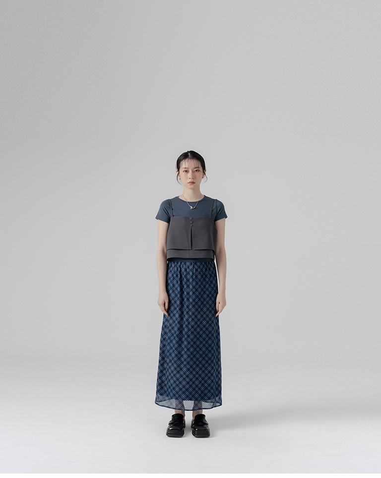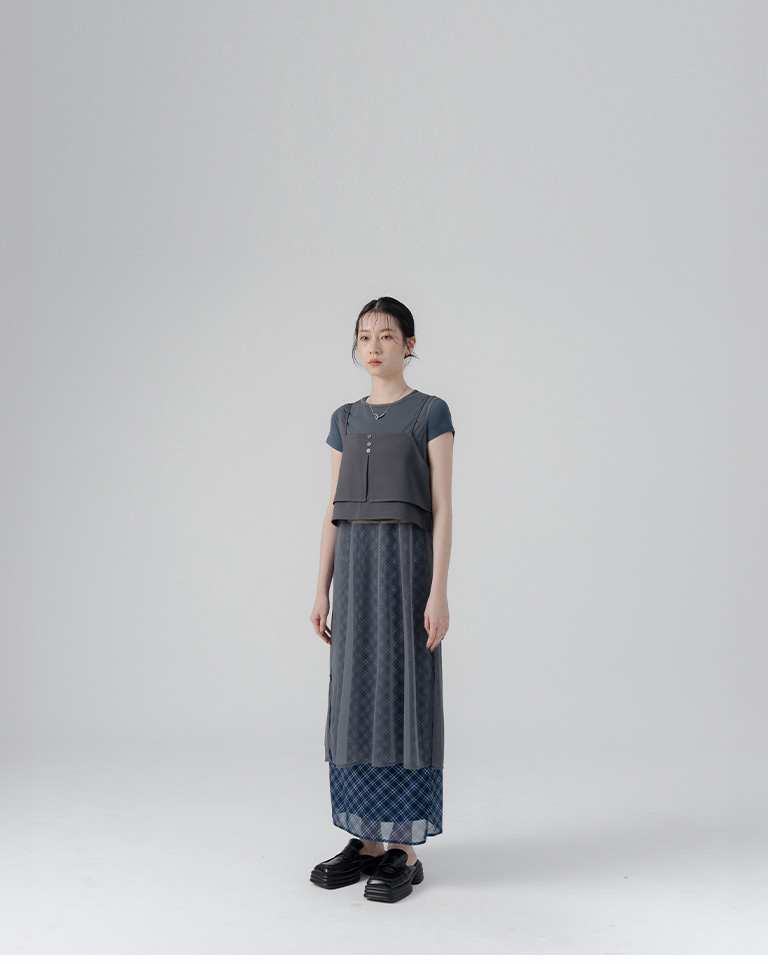 格紋透紗雙層彈性長裙