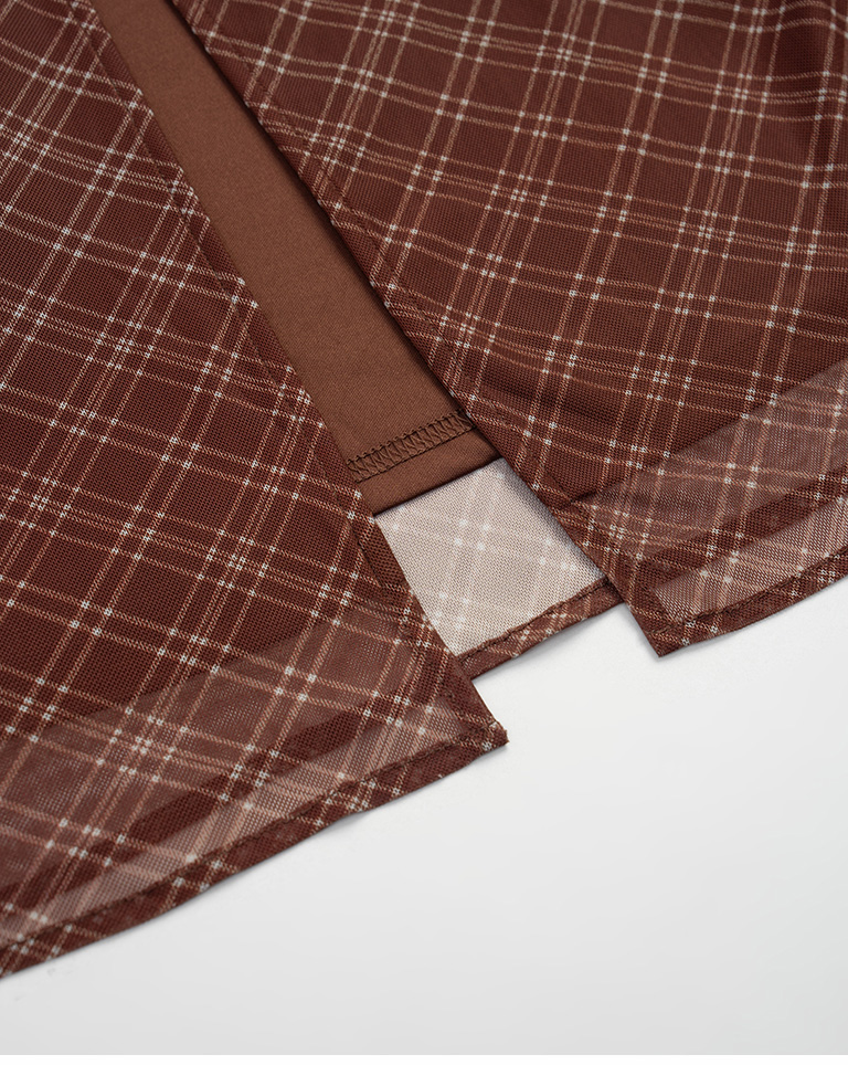 高質感彈性網紗與格紋印花 具垂墜感不貼身