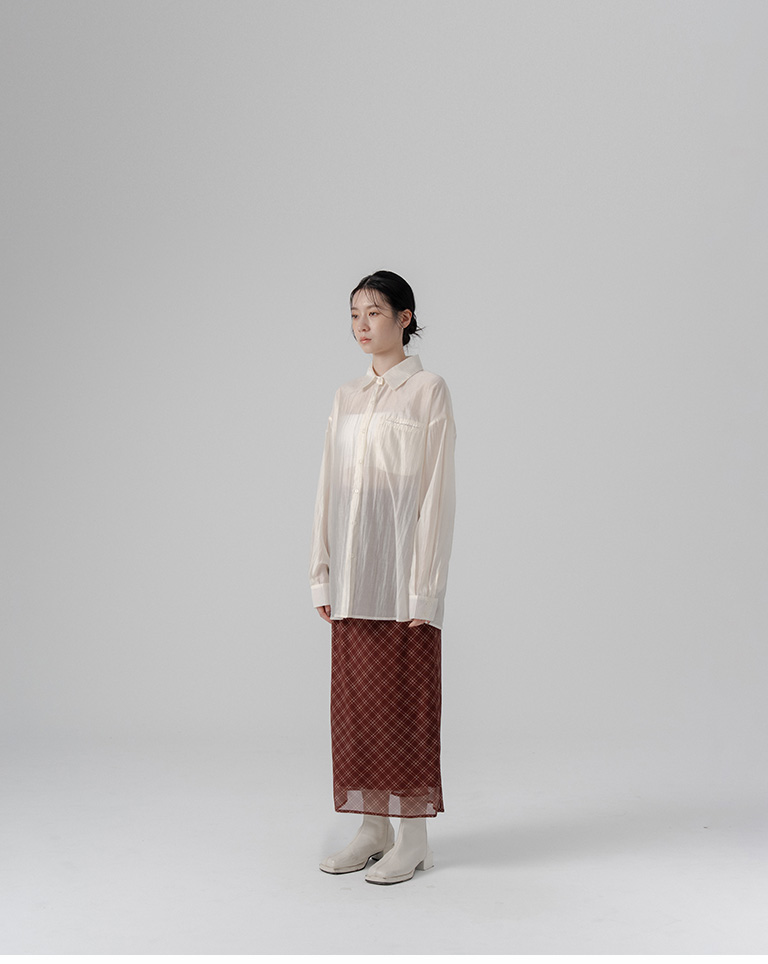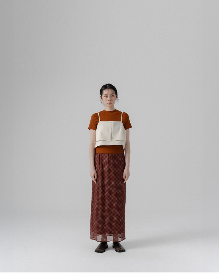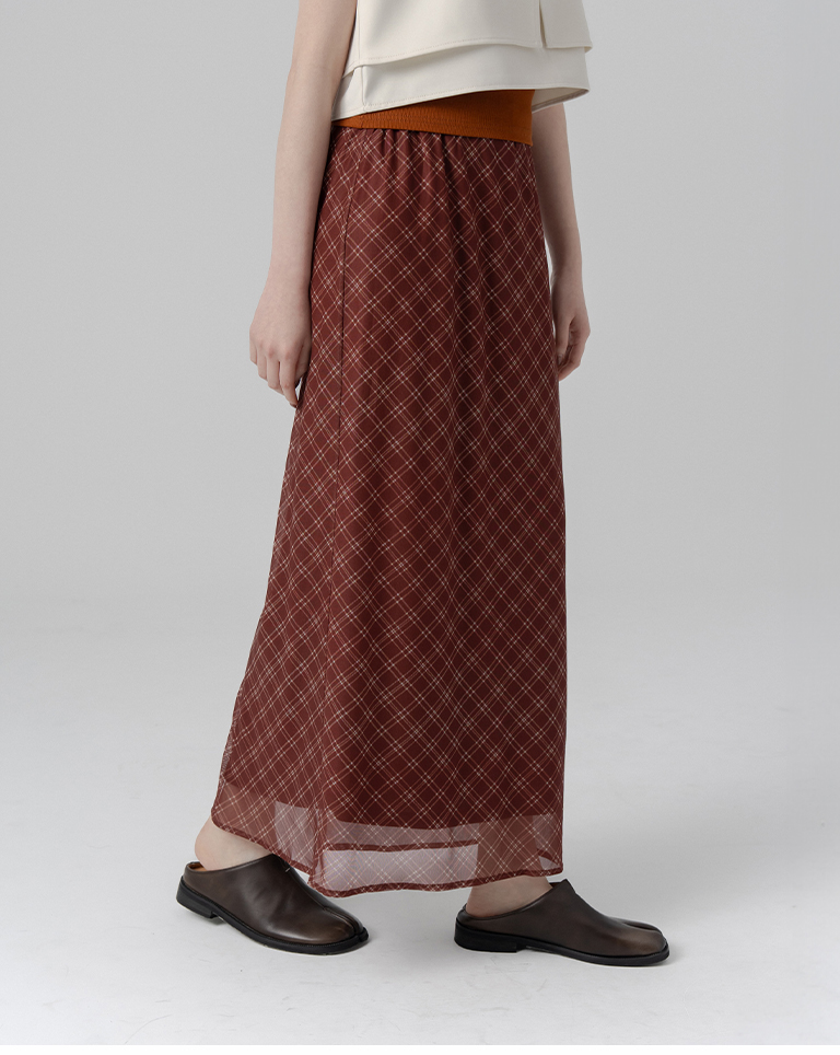 格紋透紗雙層彈性長裙-咖啡 S/M