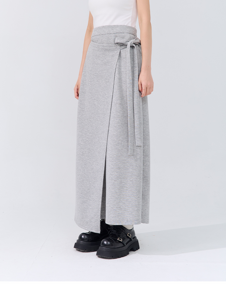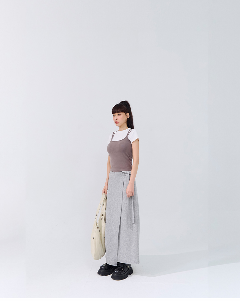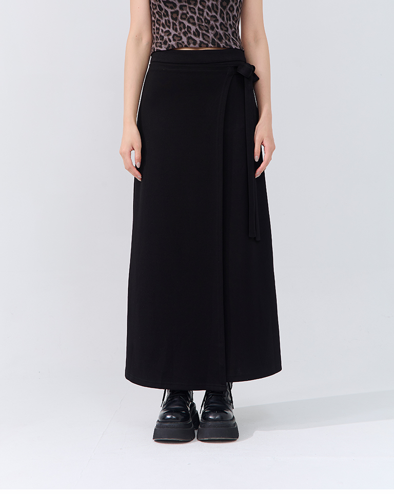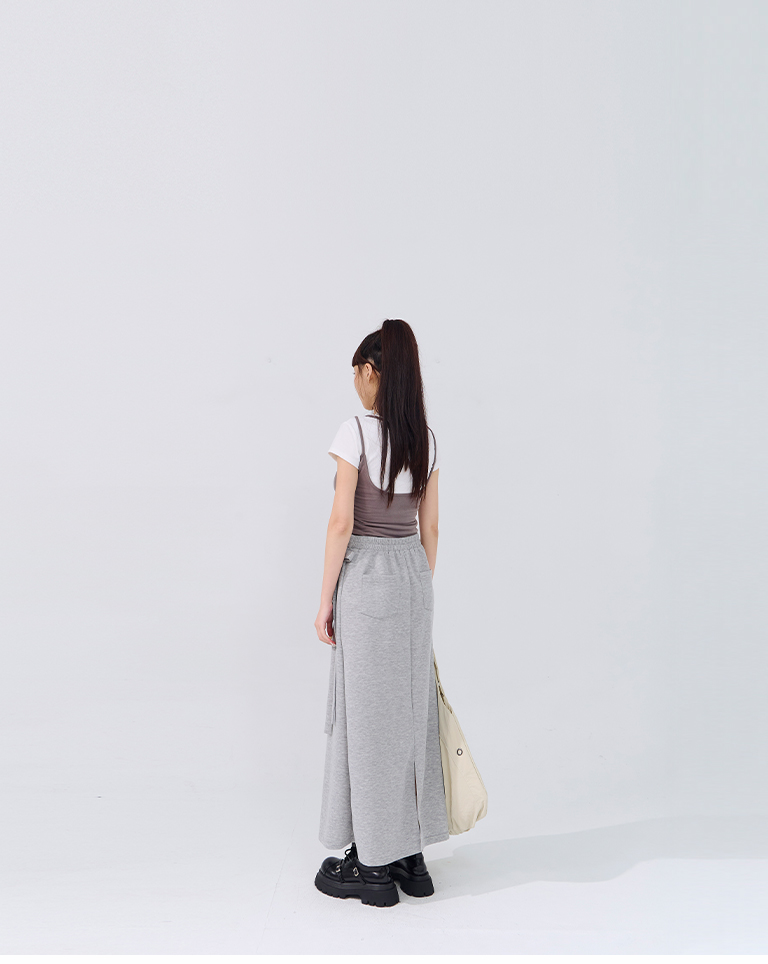 綁帶剪接不對稱太空棉長裙 兩色售 S/M