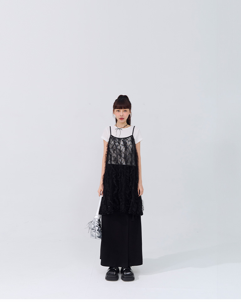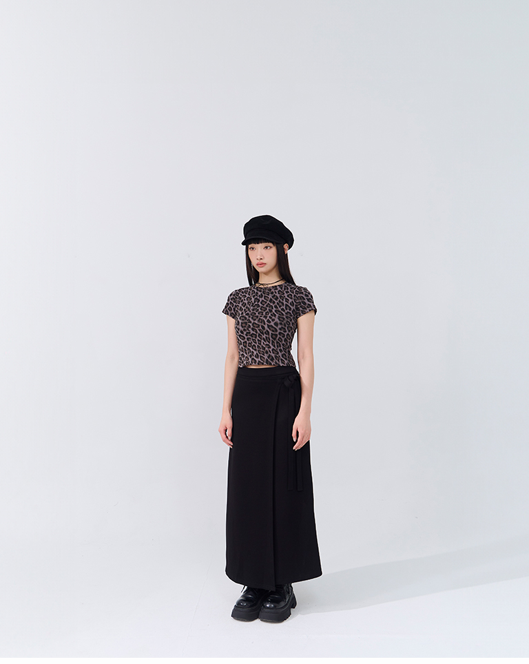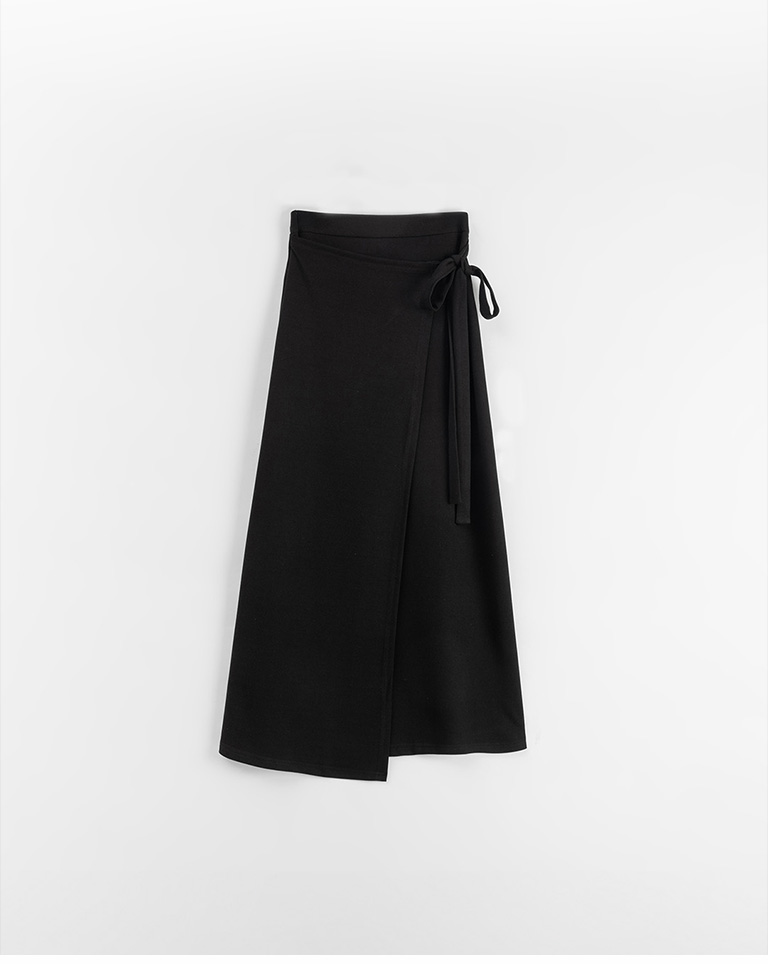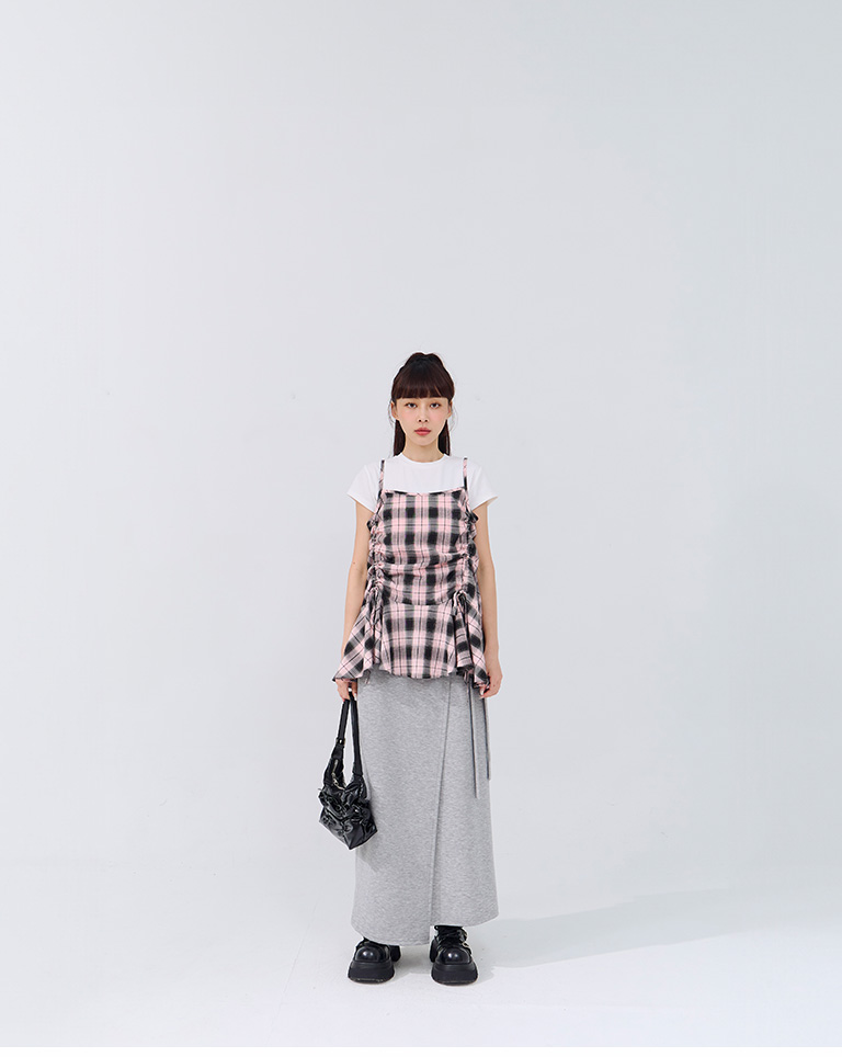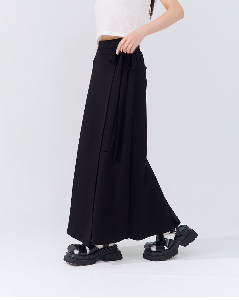 綁帶剪接不對稱太空棉長裙 兩色售 S/M