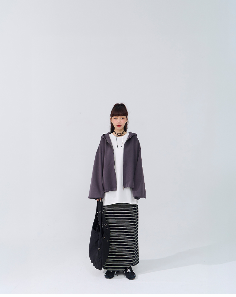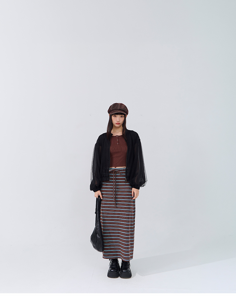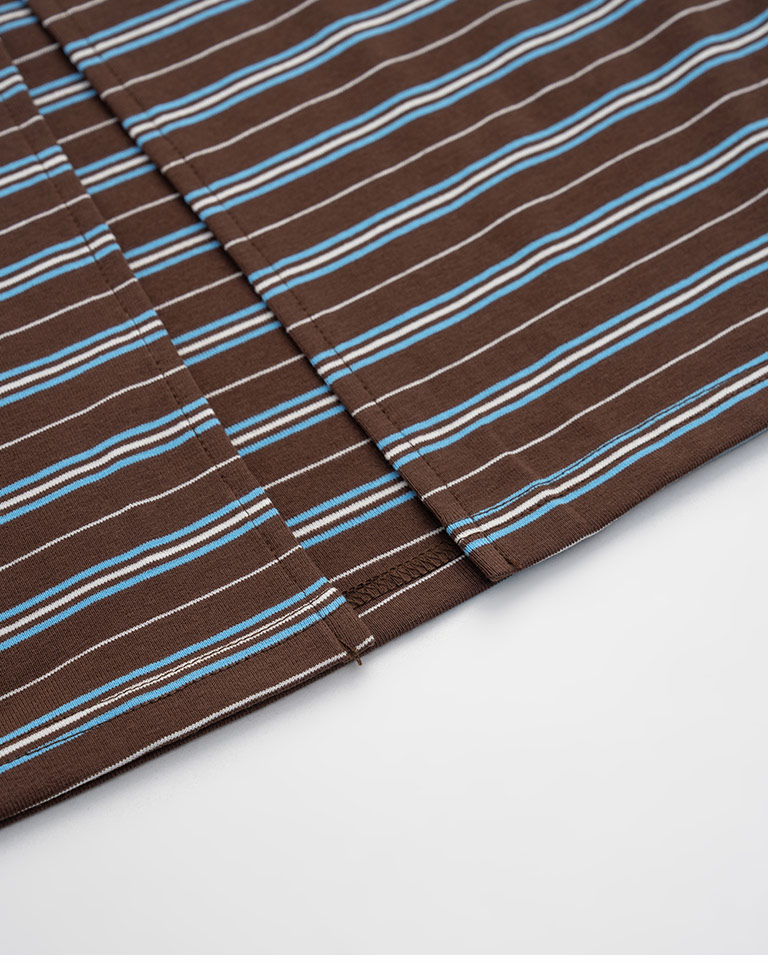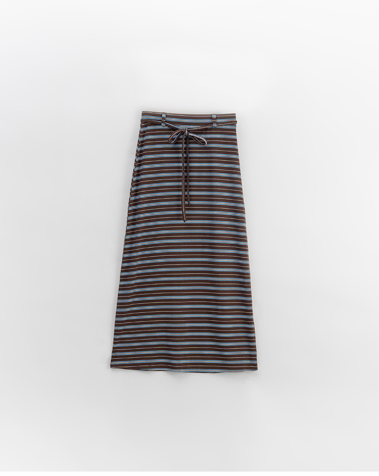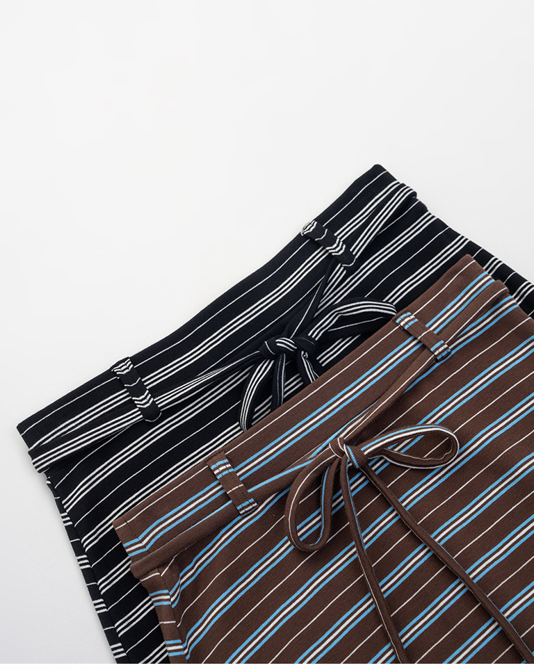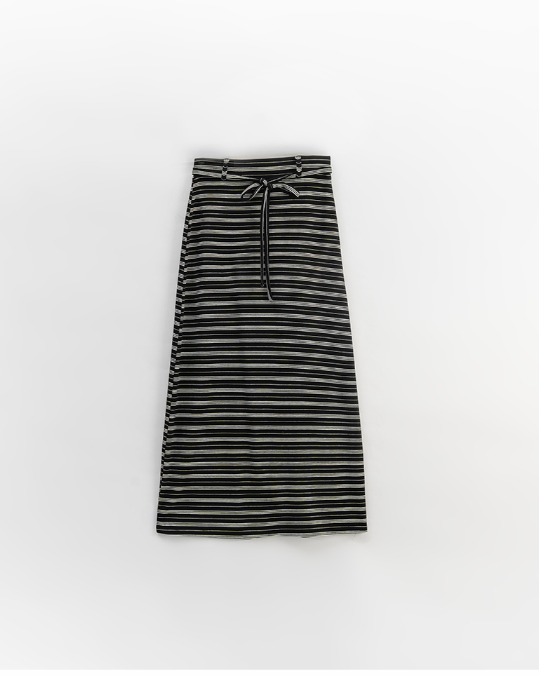 休閒條紋直筒棉質長裙附腰帶 兩色售 S-L