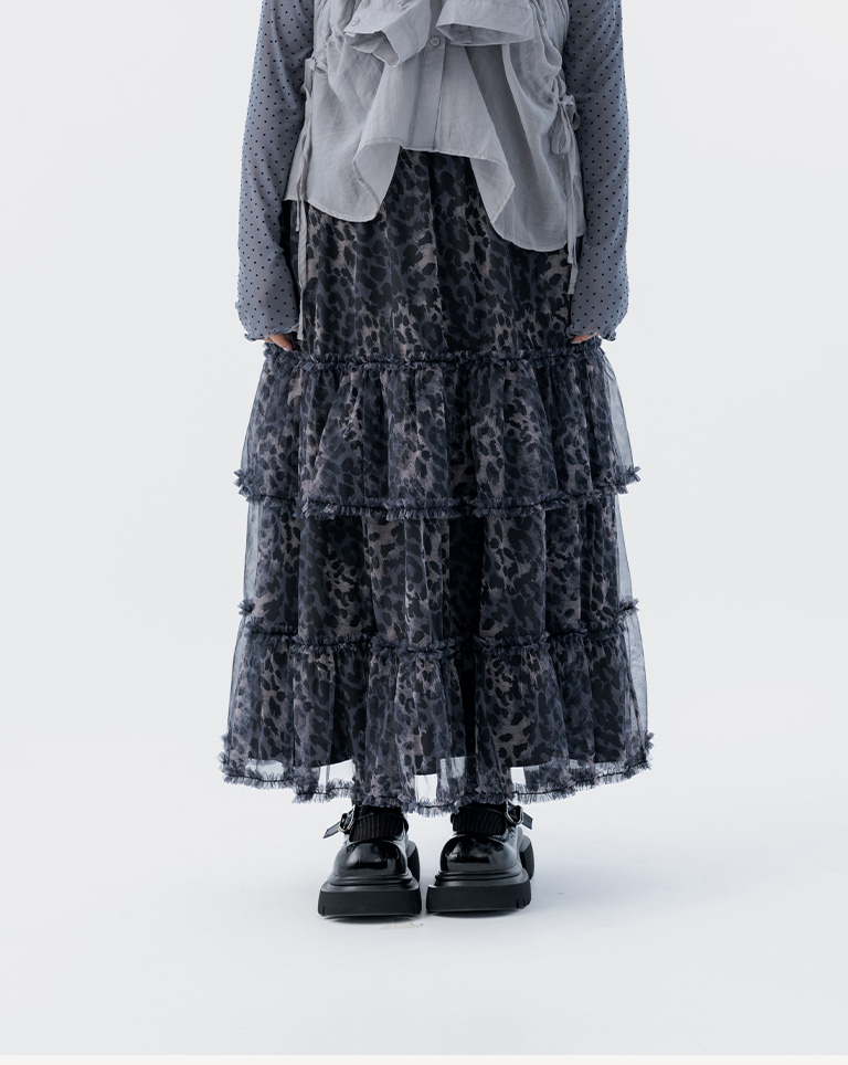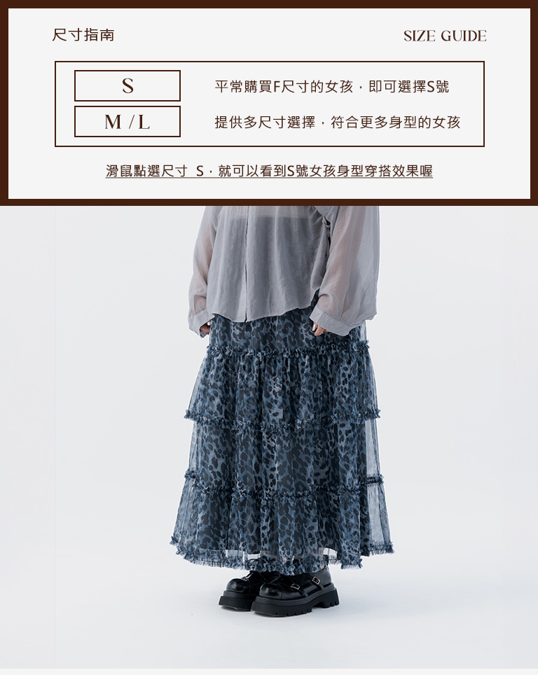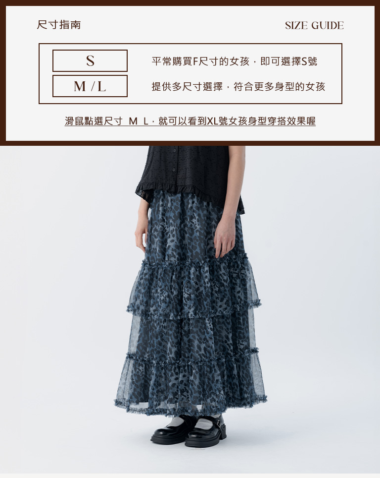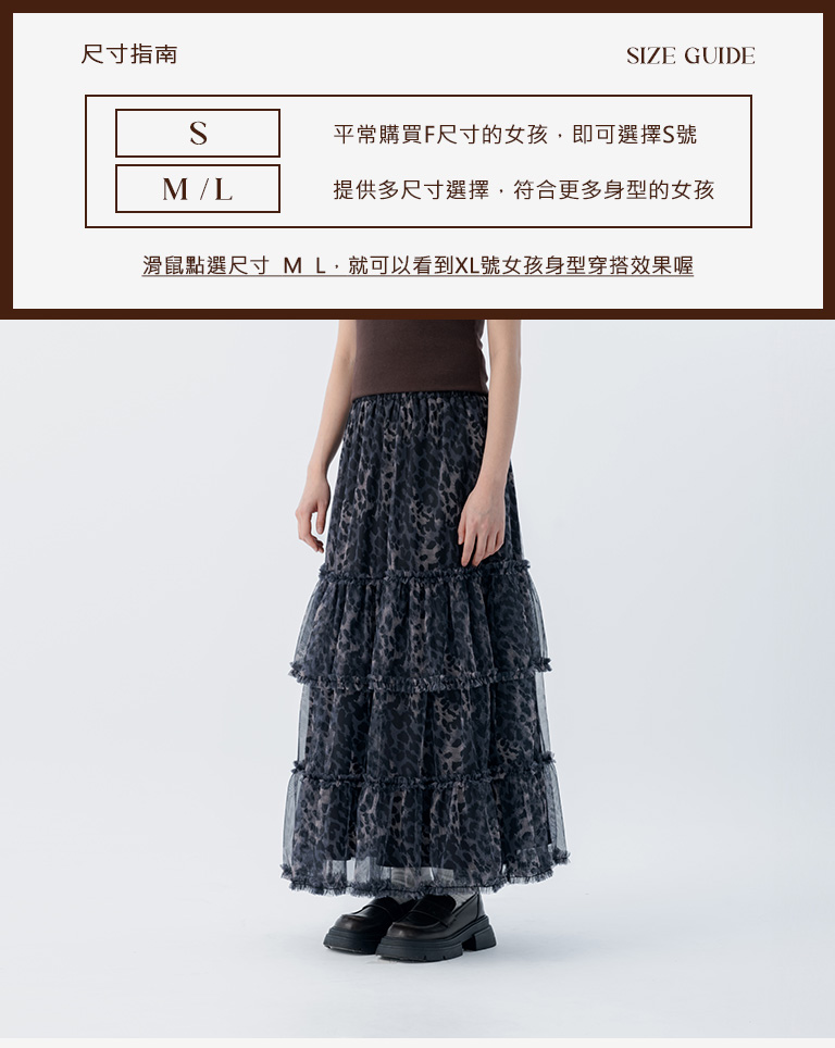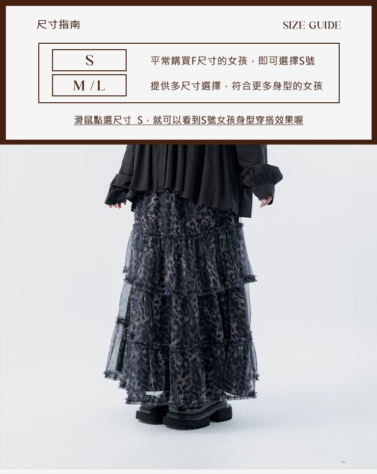 棉花糖 豹紋透紗造型蛋糕長裙 兩色售 S/M/L