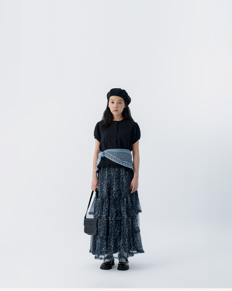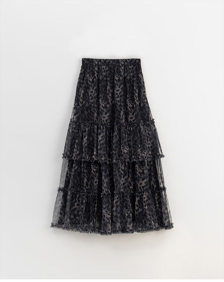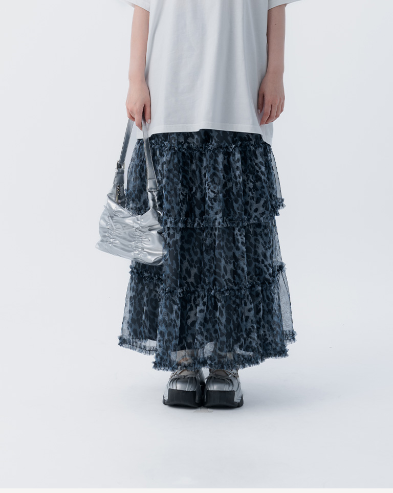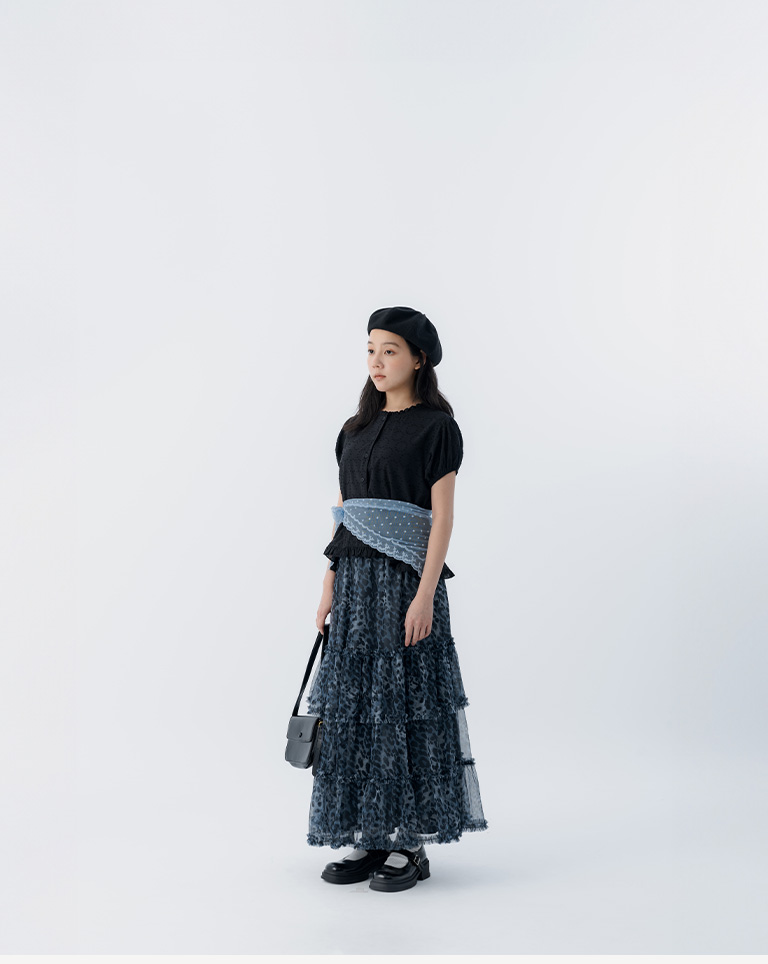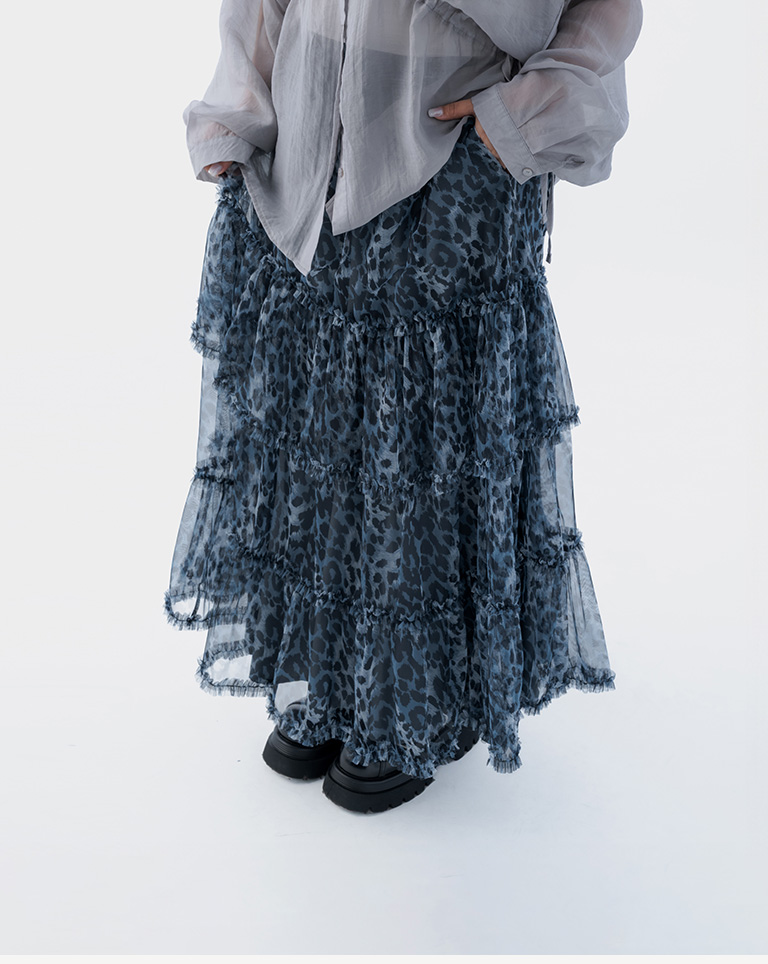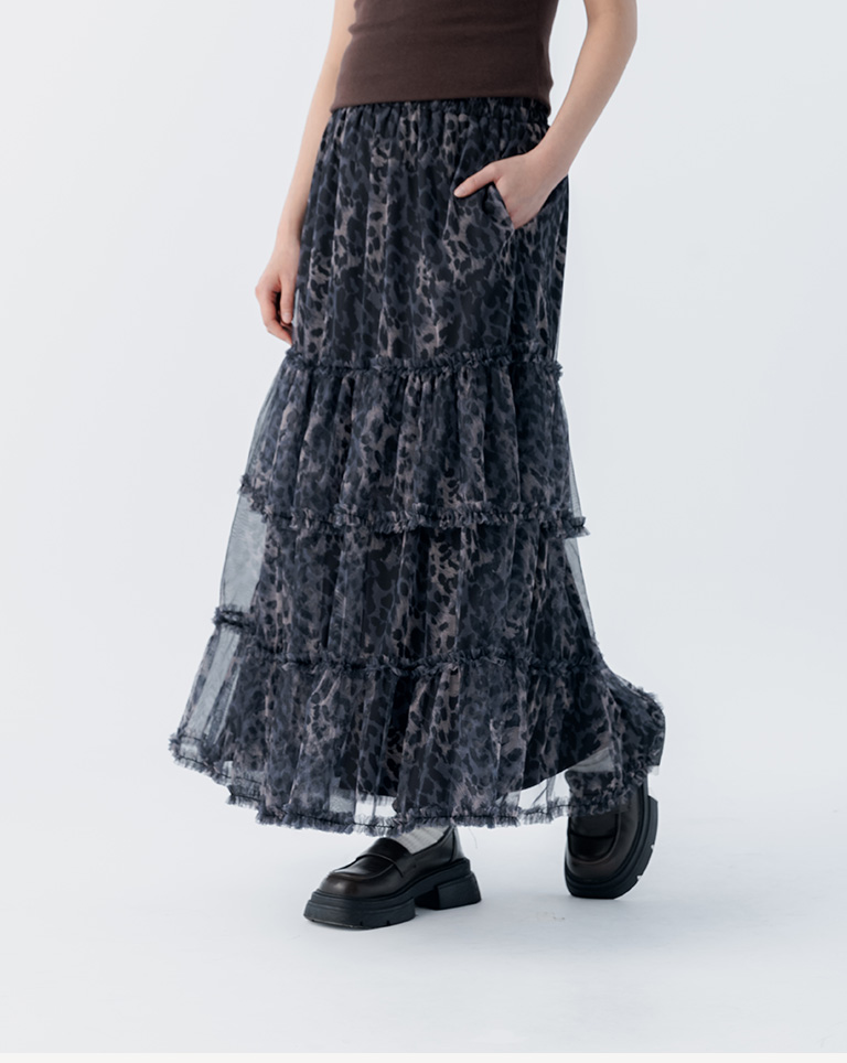 棉花糖 豹紋透紗造型蛋糕長裙 兩色售 S/M/L