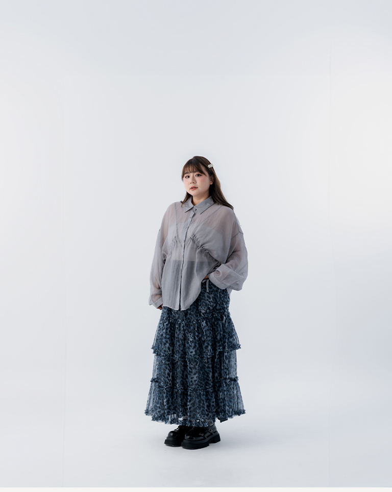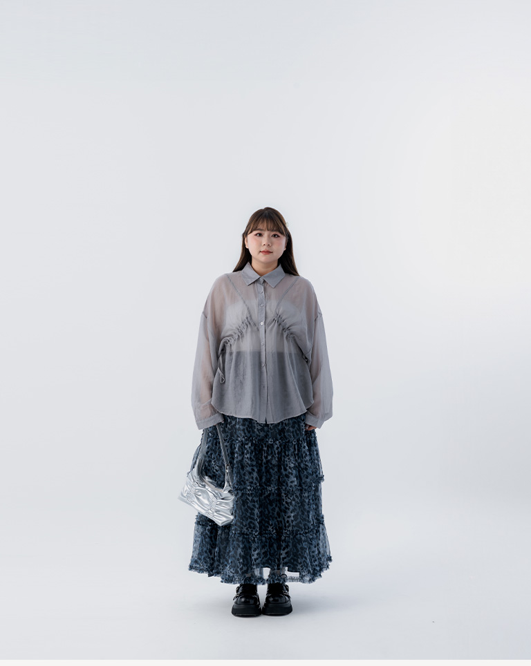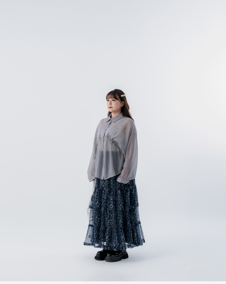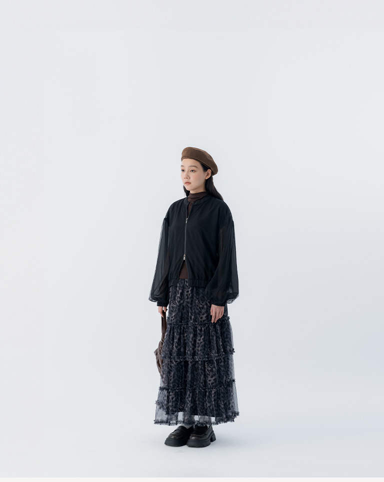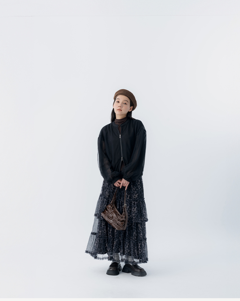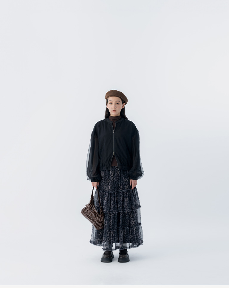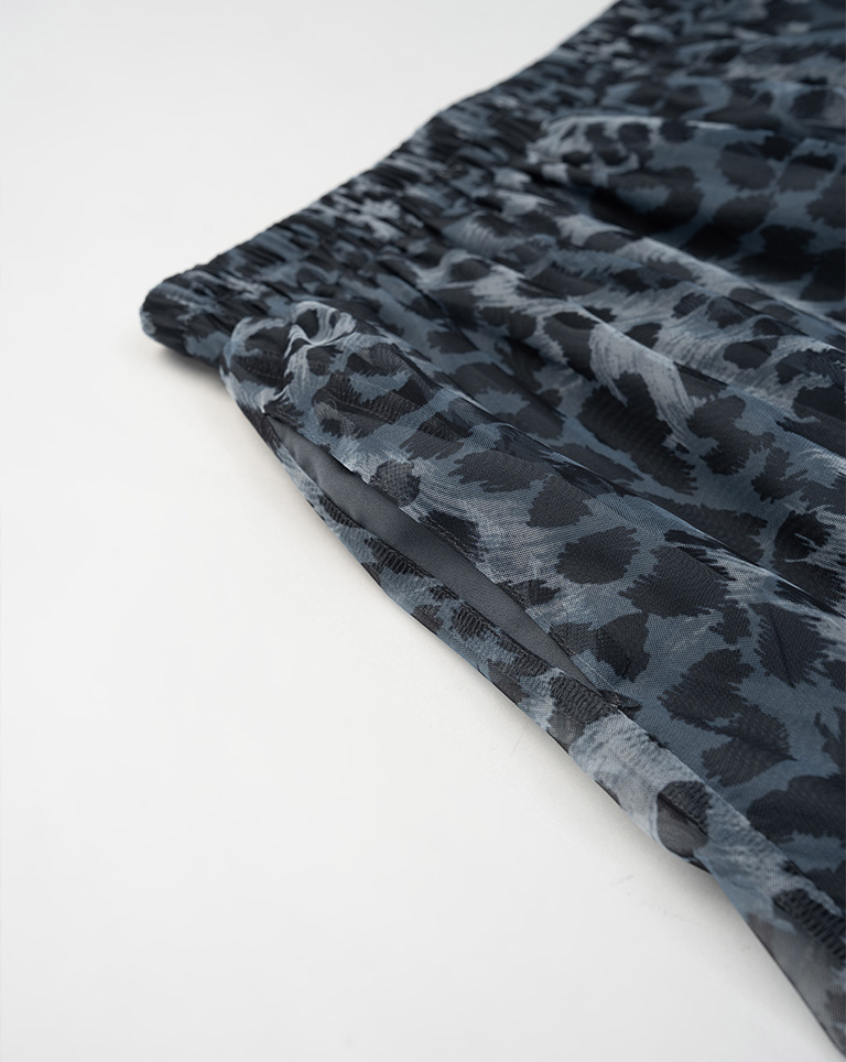 選用輕盈透膚的豹紋透紗面料