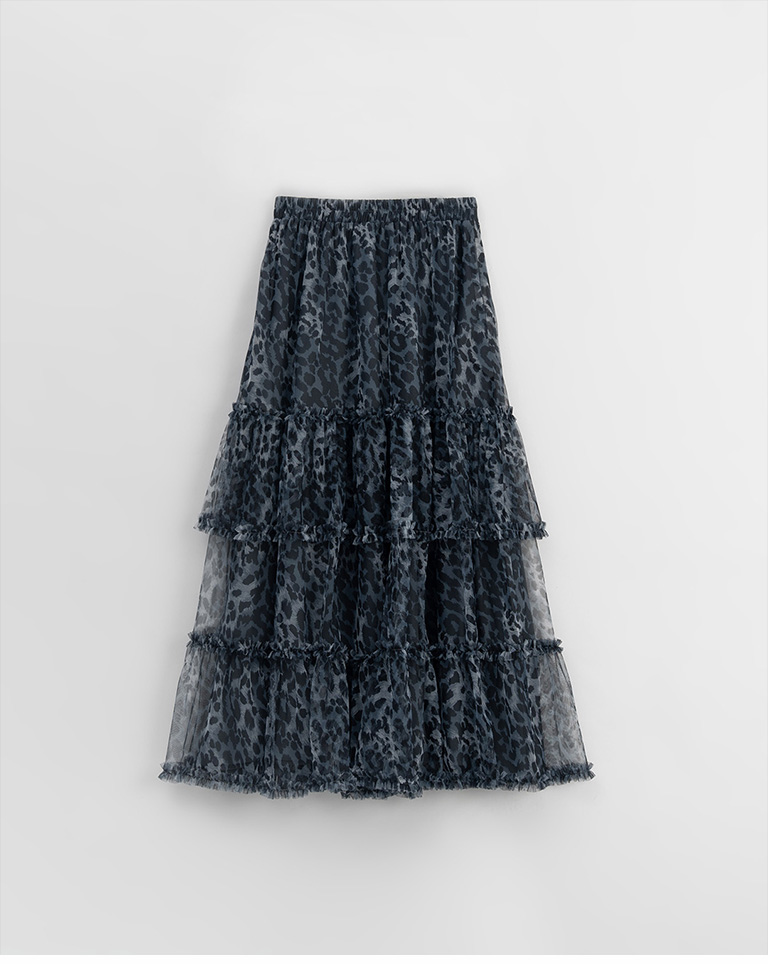 棉花糖 豹紋透紗造型蛋糕長裙