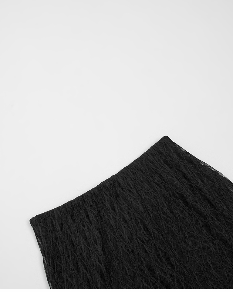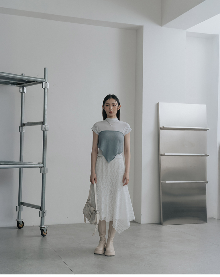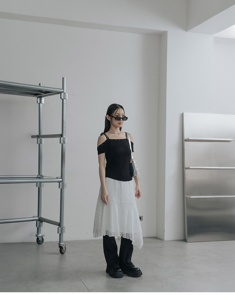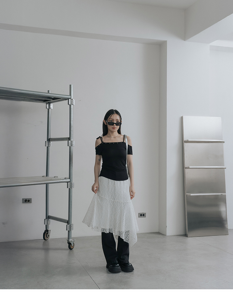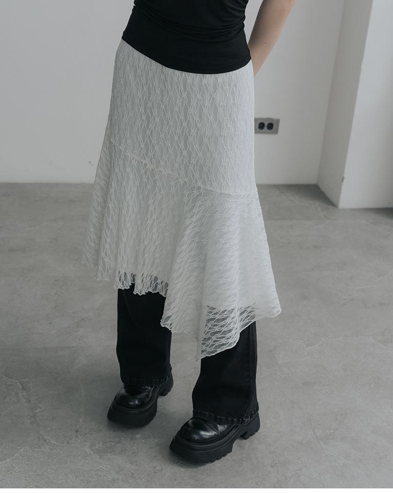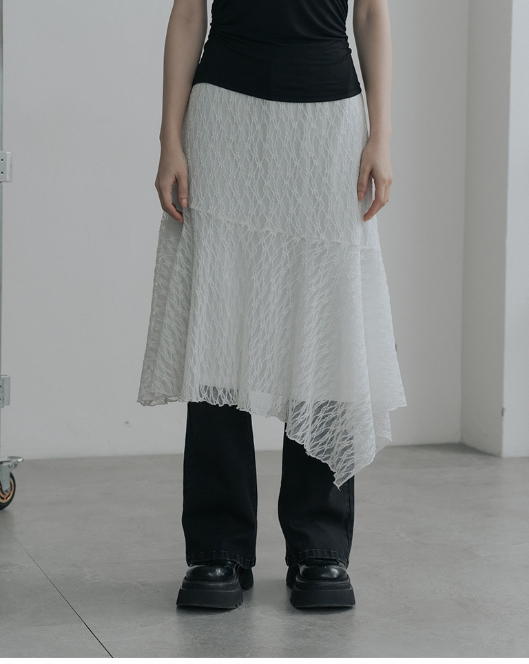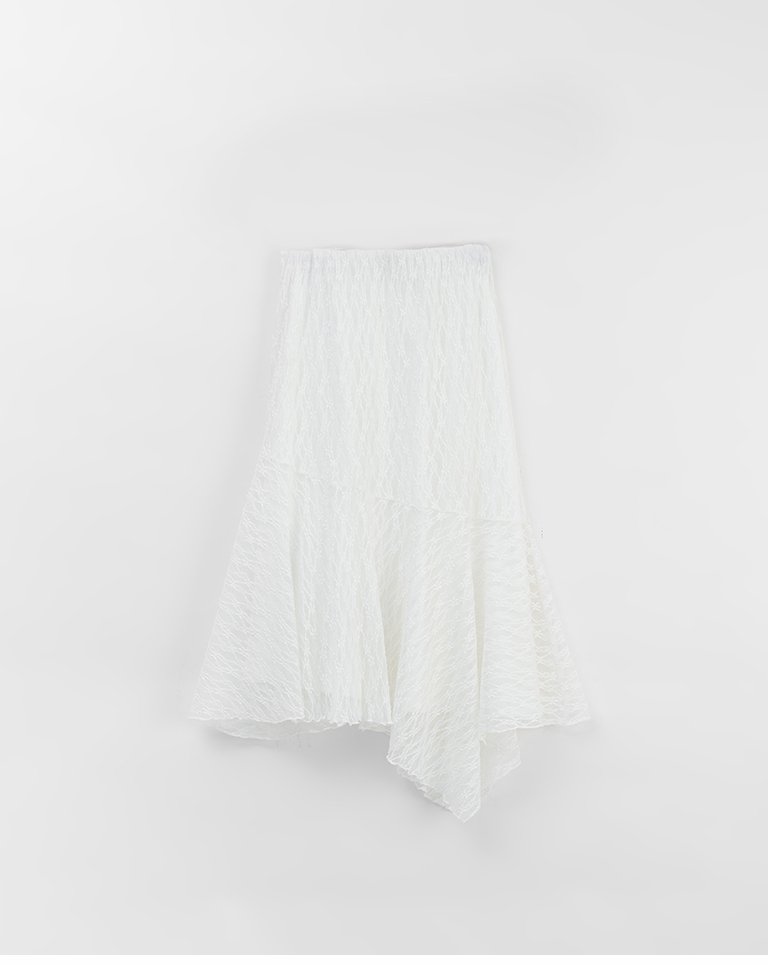 質感蕾絲不規則剪接設計七分長裙-白 S/M