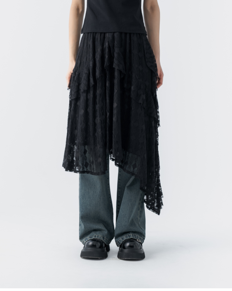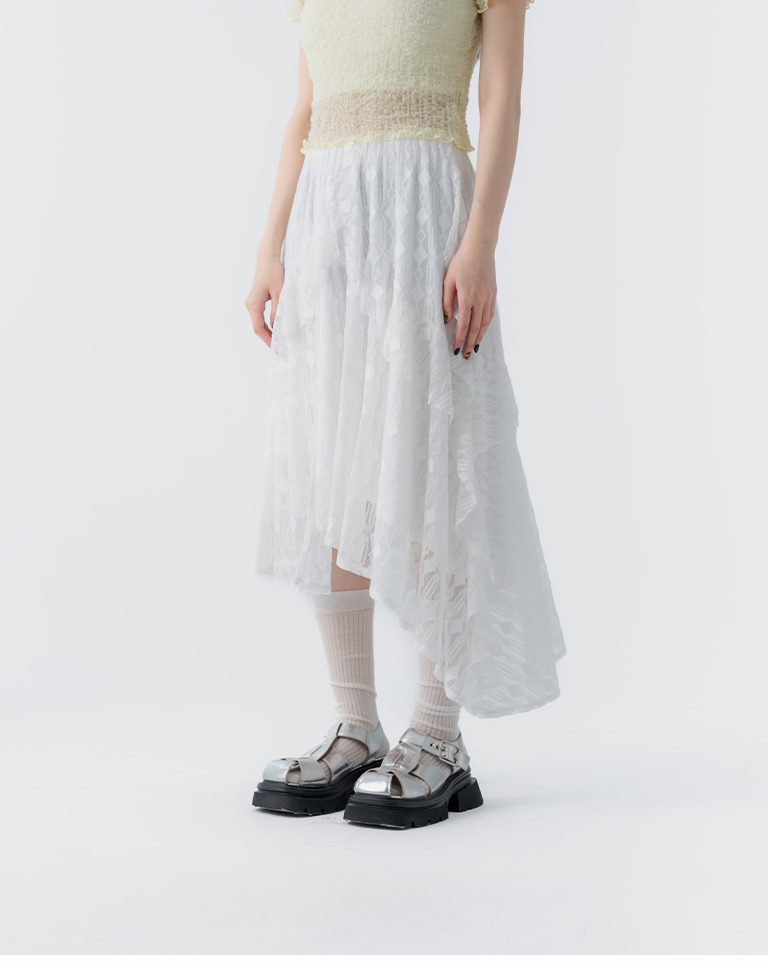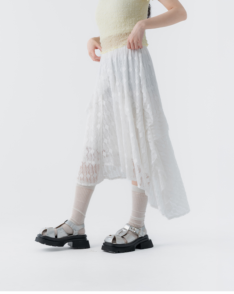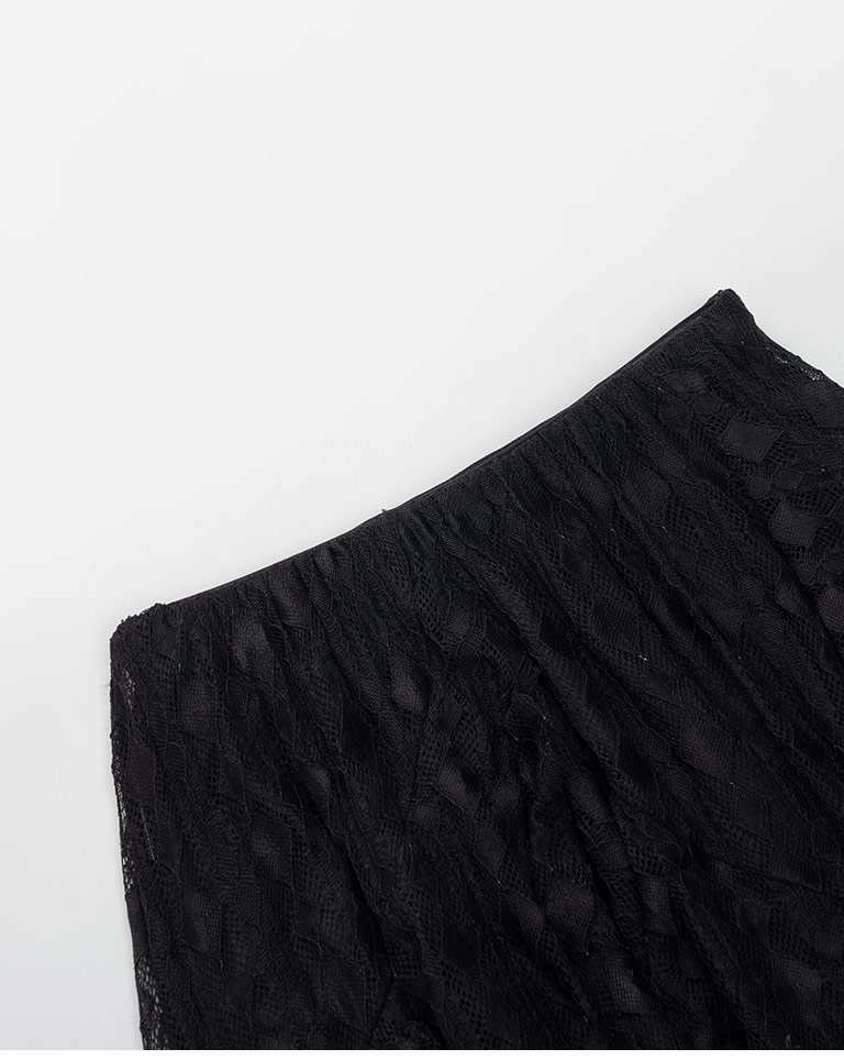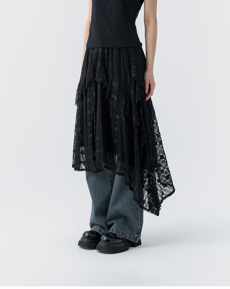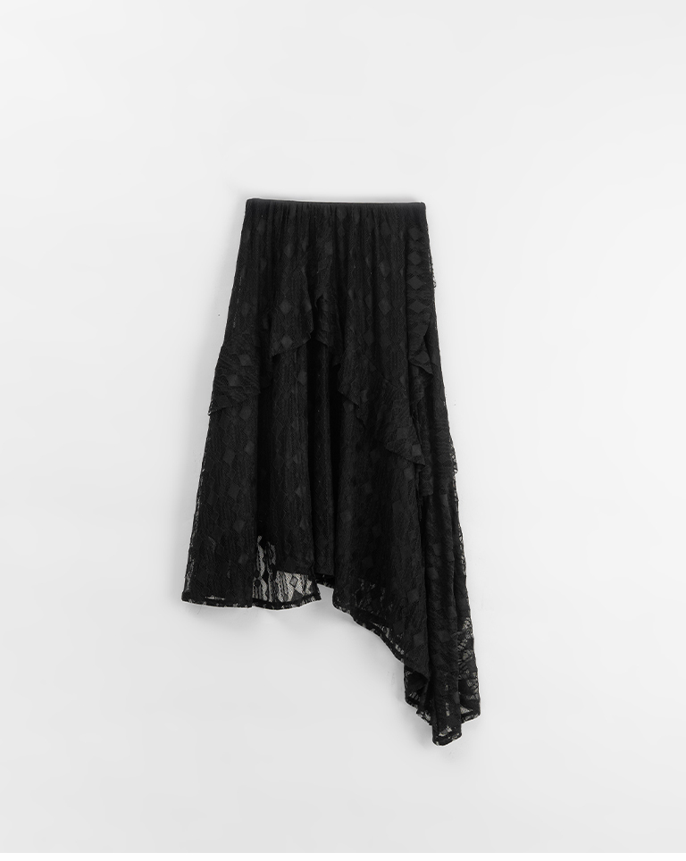 緹花蕾絲不規則下擺中長裙
