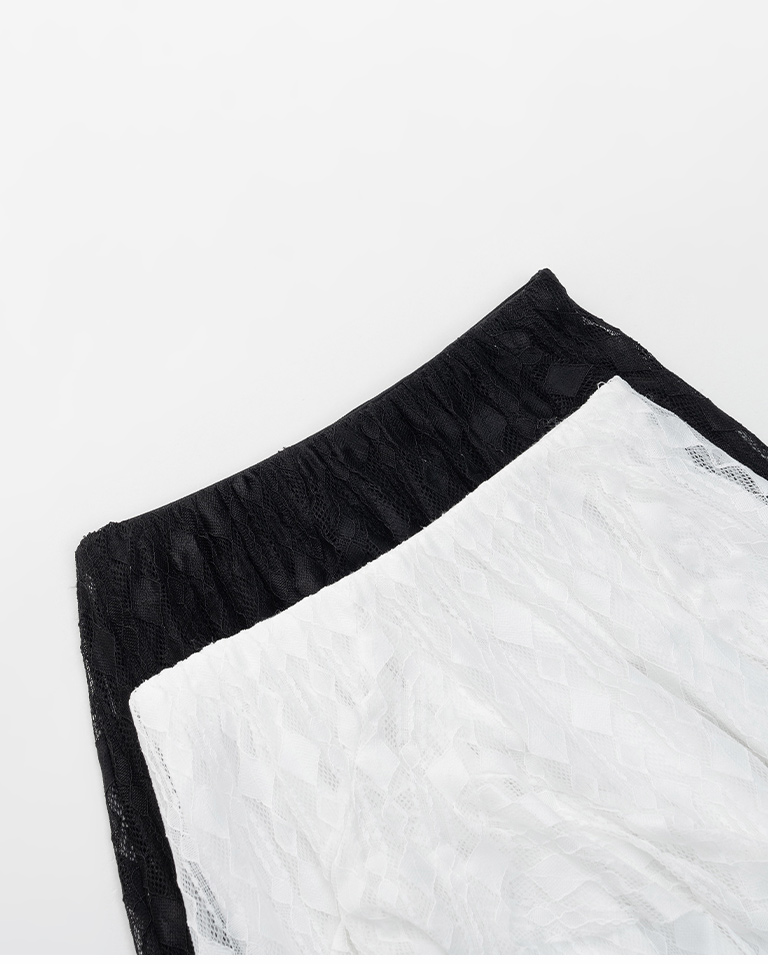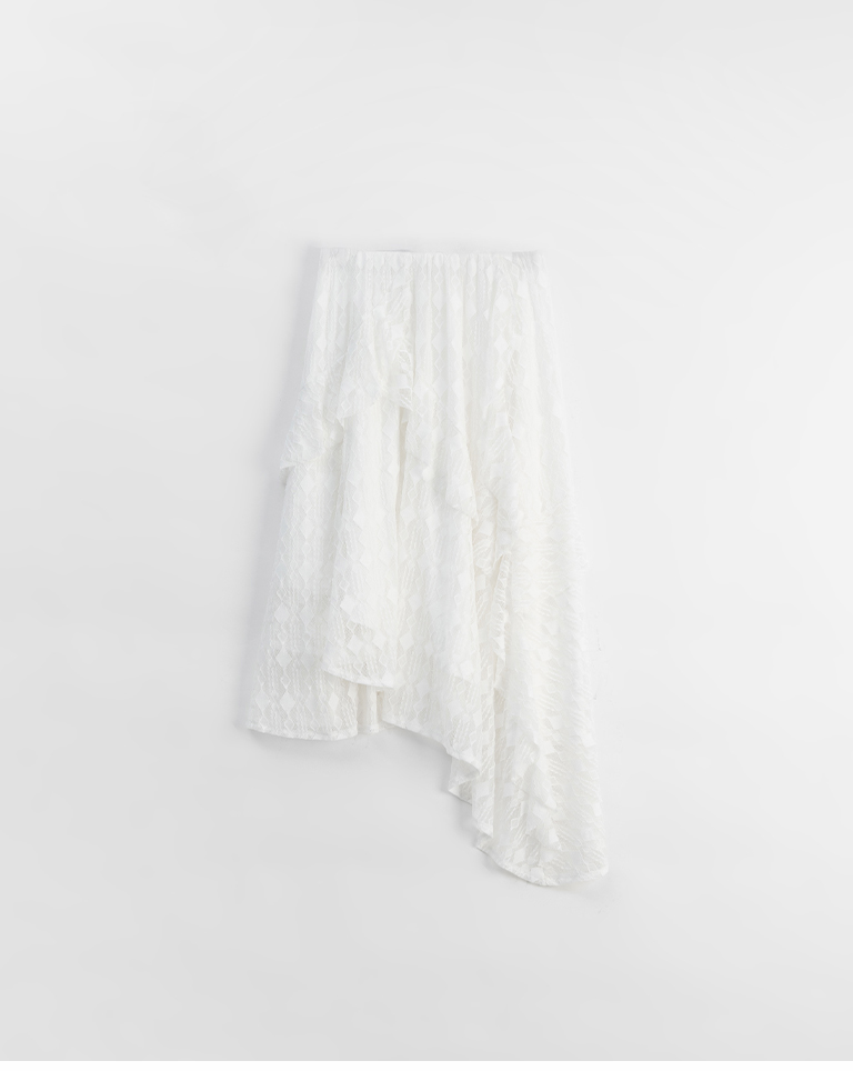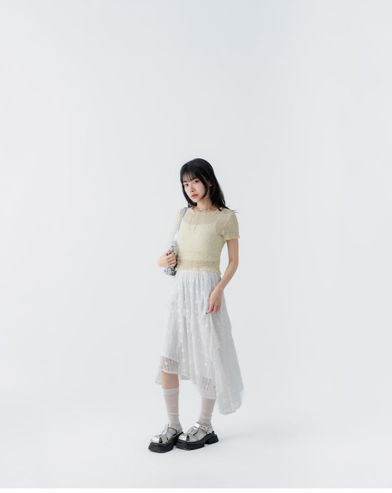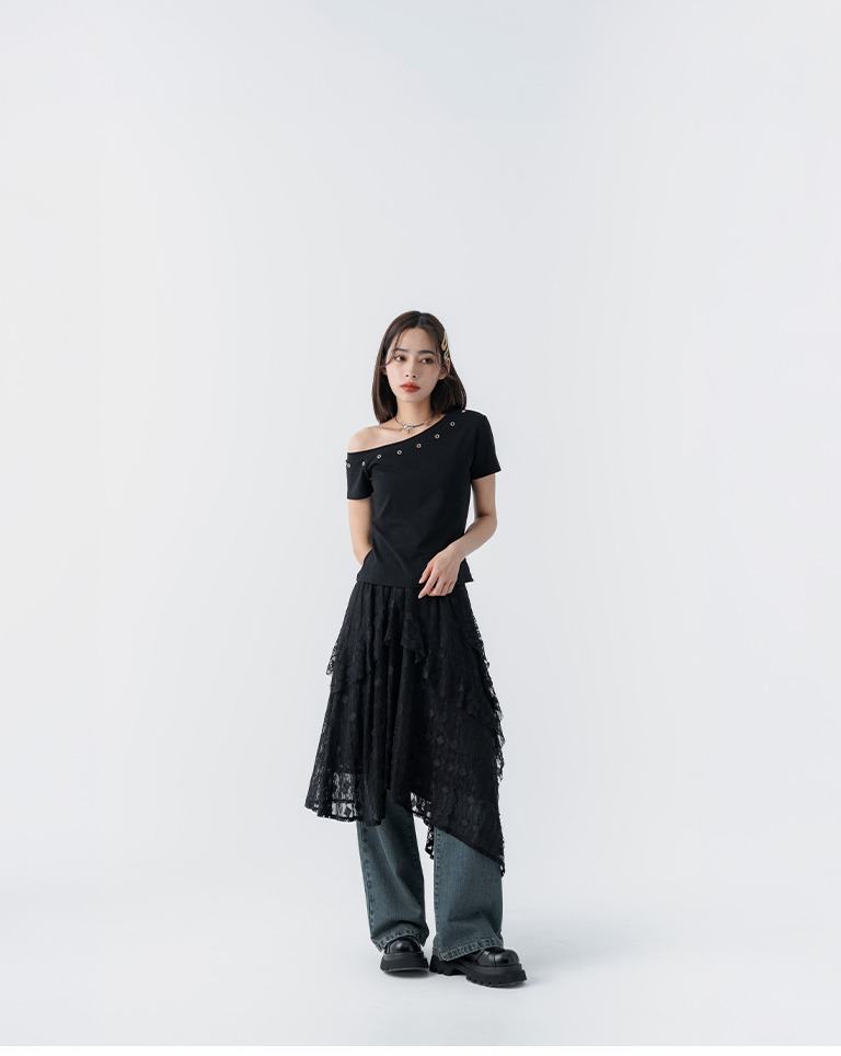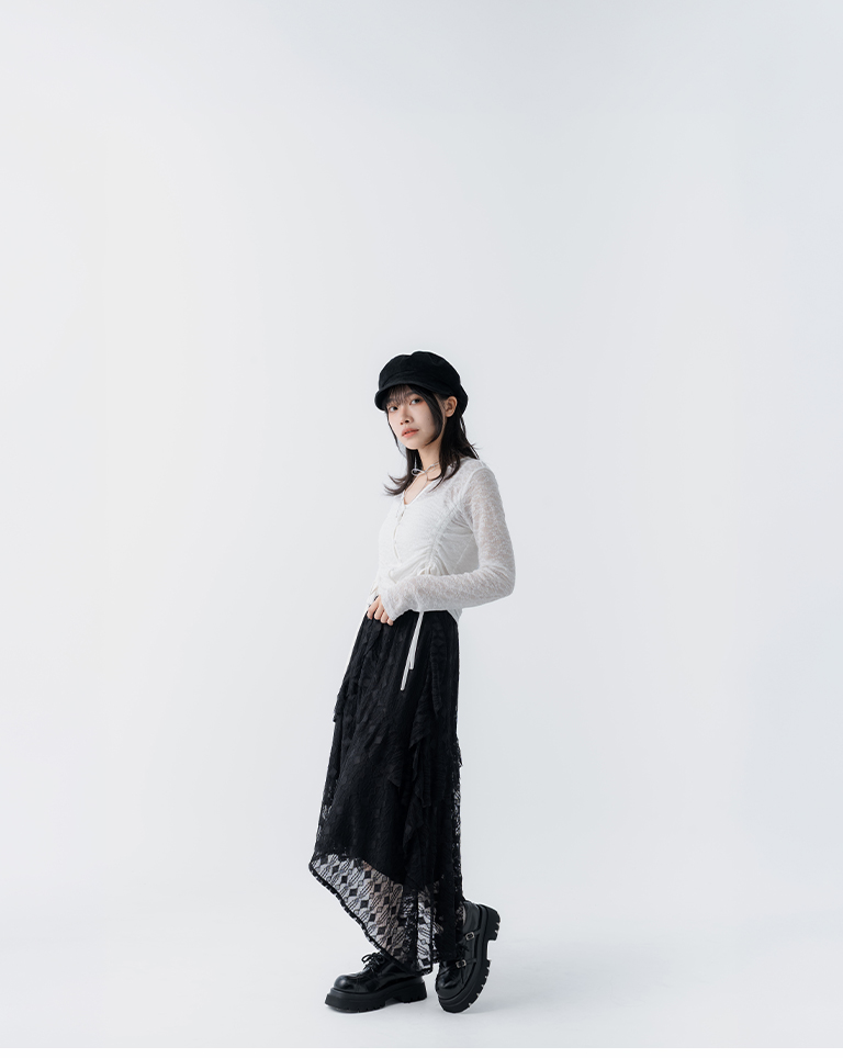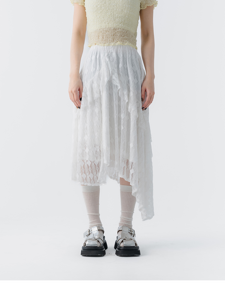緹花蕾絲不規則下擺中長裙