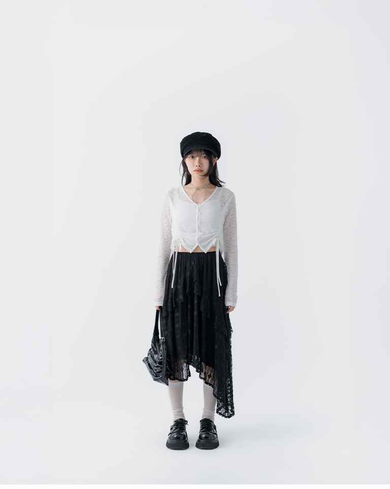 緹花蕾絲不規則下擺中長裙 兩色售 S/M