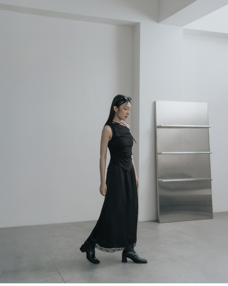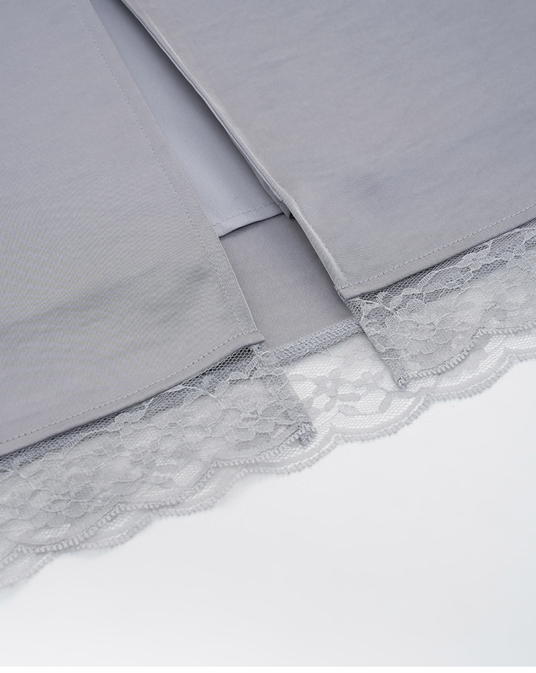 蕾絲鏤空裙襬設計緞面長裙