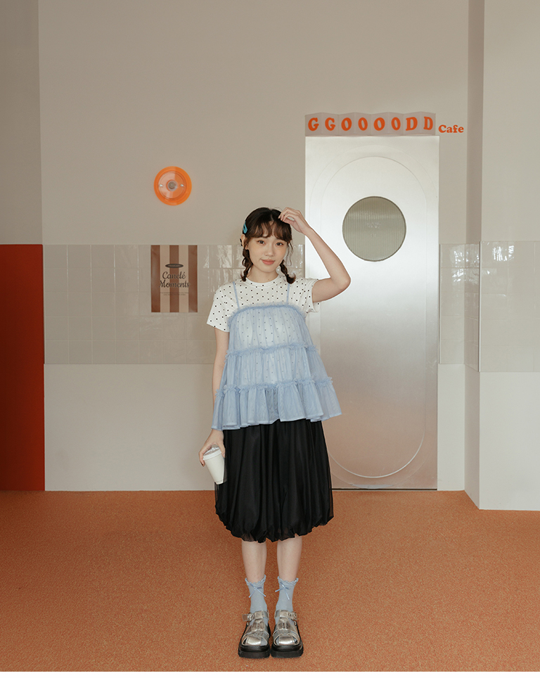 搭配簡單上衣即可打造甜美又有層次的整體造型
