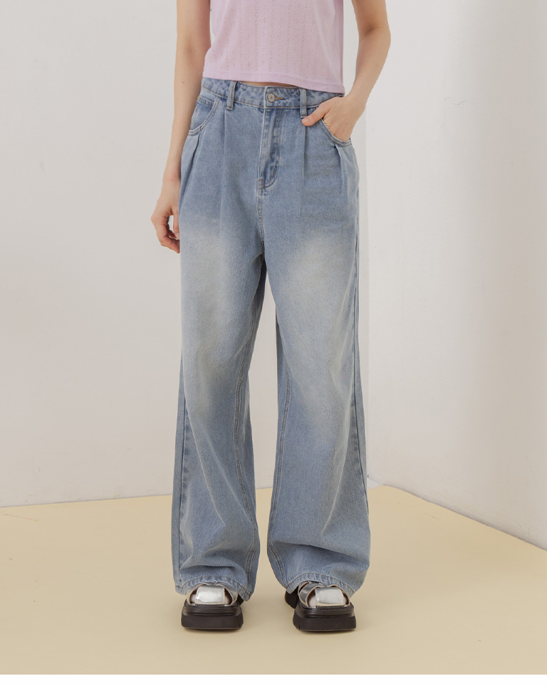 簡約素面水洗牛仔長褲
