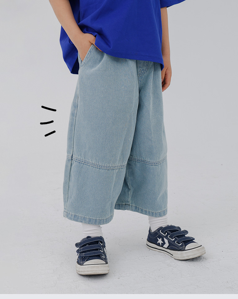 童裝 膝剪接蘿蔔水洗牛仔褲