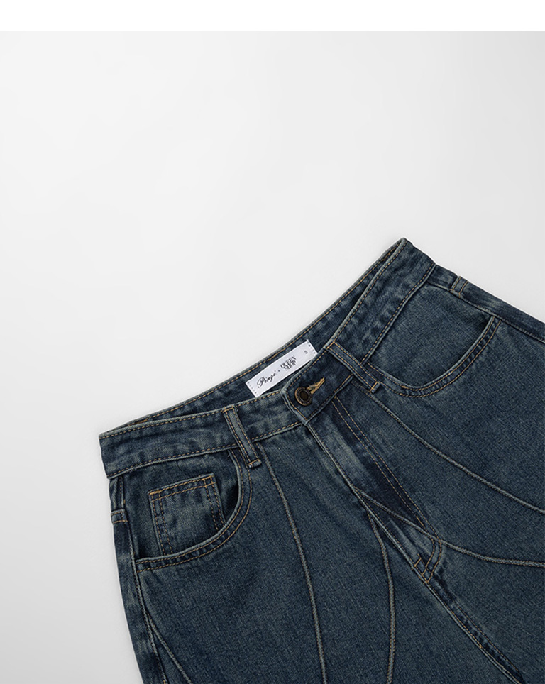 剪裁有型!個性線條錐形牛仔褲