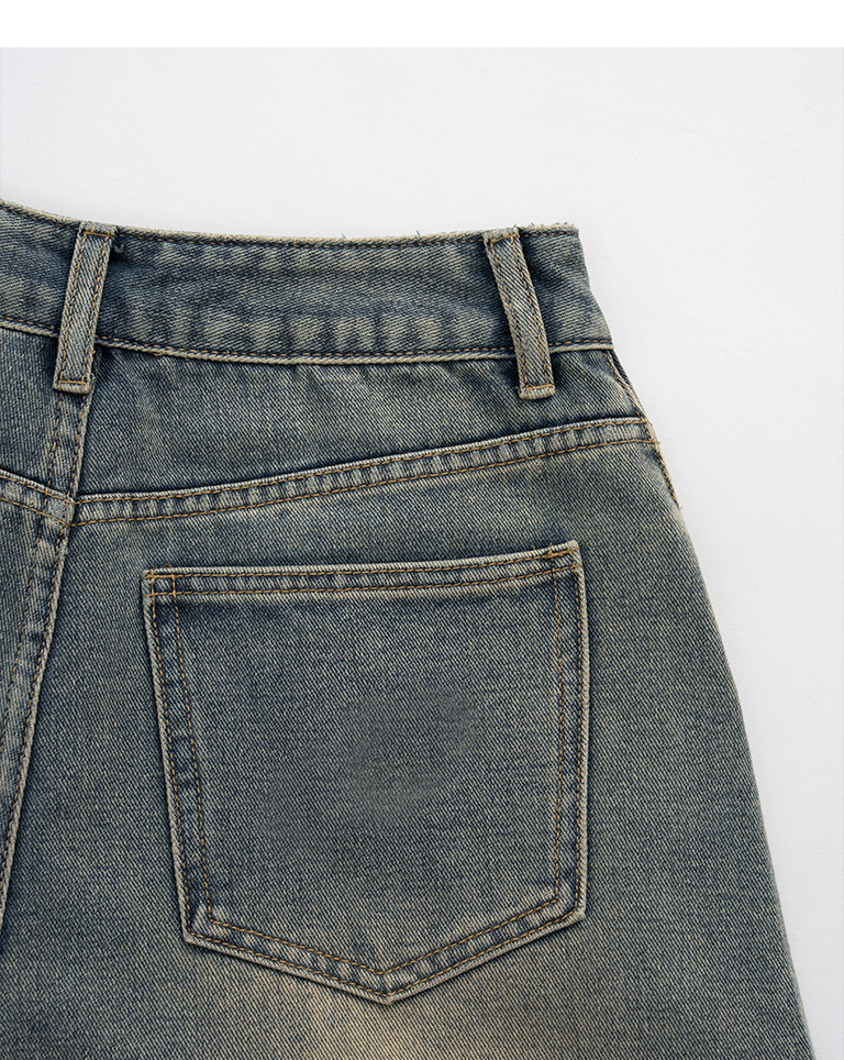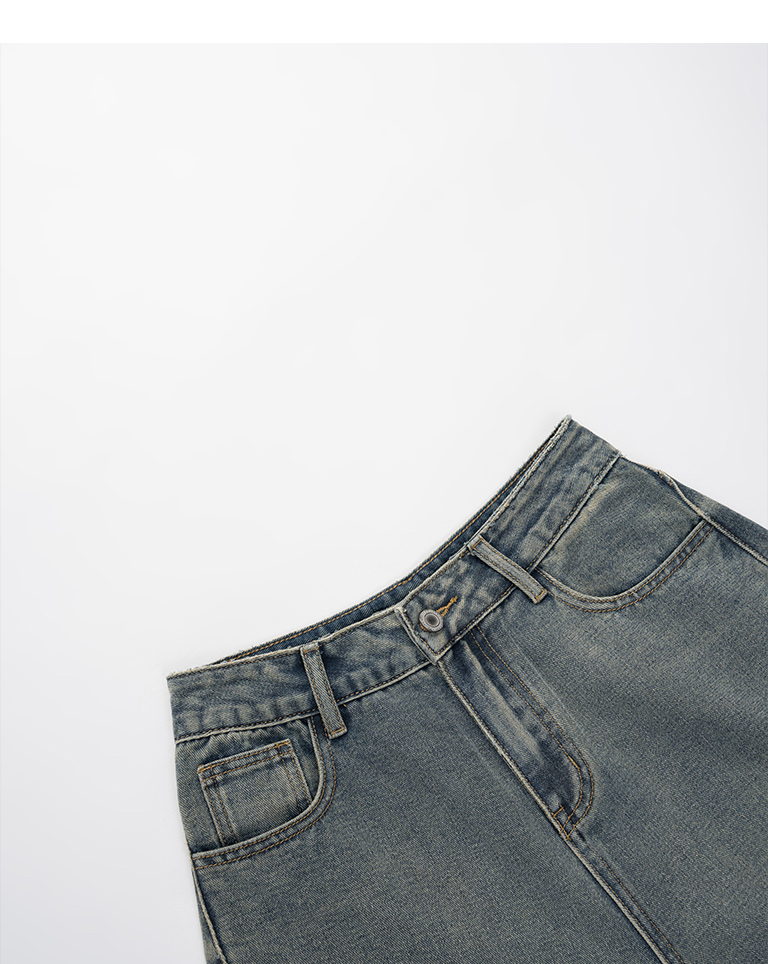 復古水洗設計彎刀牛仔褲
