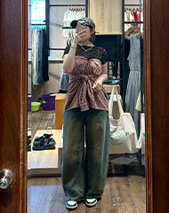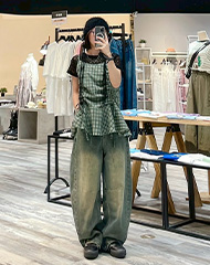 上身搭配格紋背心 展現復古可愛風格~