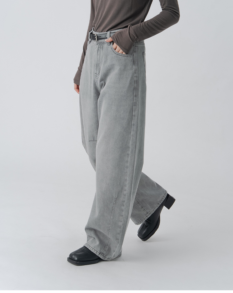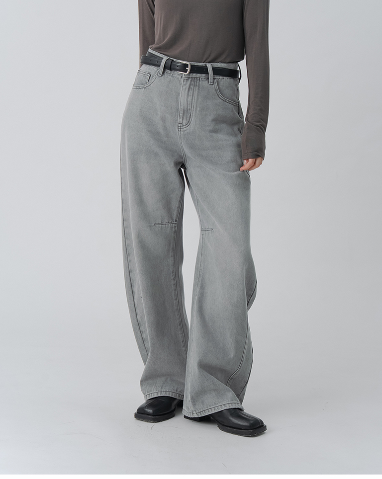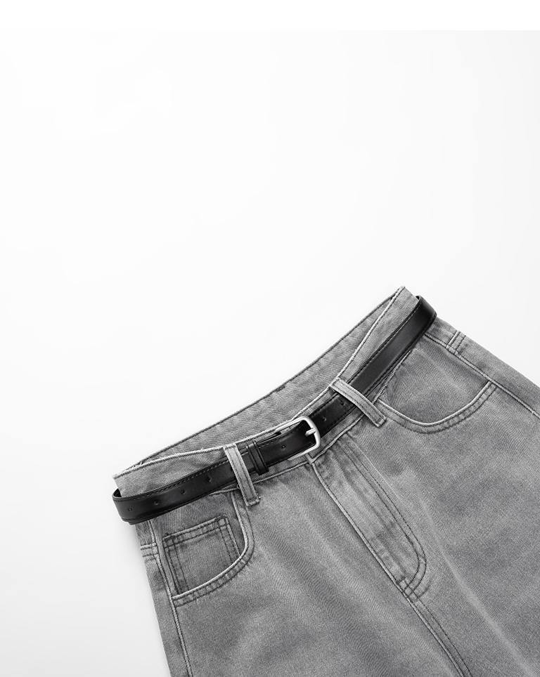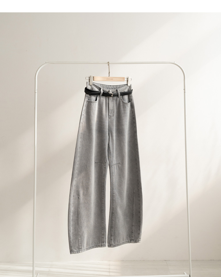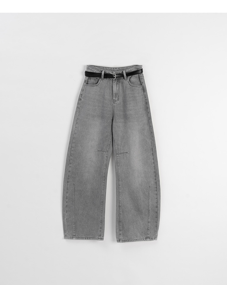刷白附皮帶繭型牛仔長褲