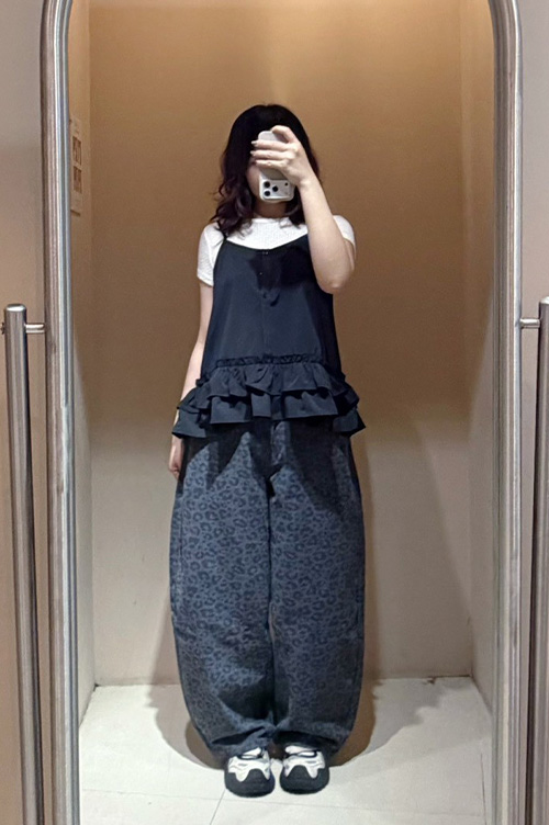 洗水豹紋設計繭型斜紋長褲 XS/S/M/L