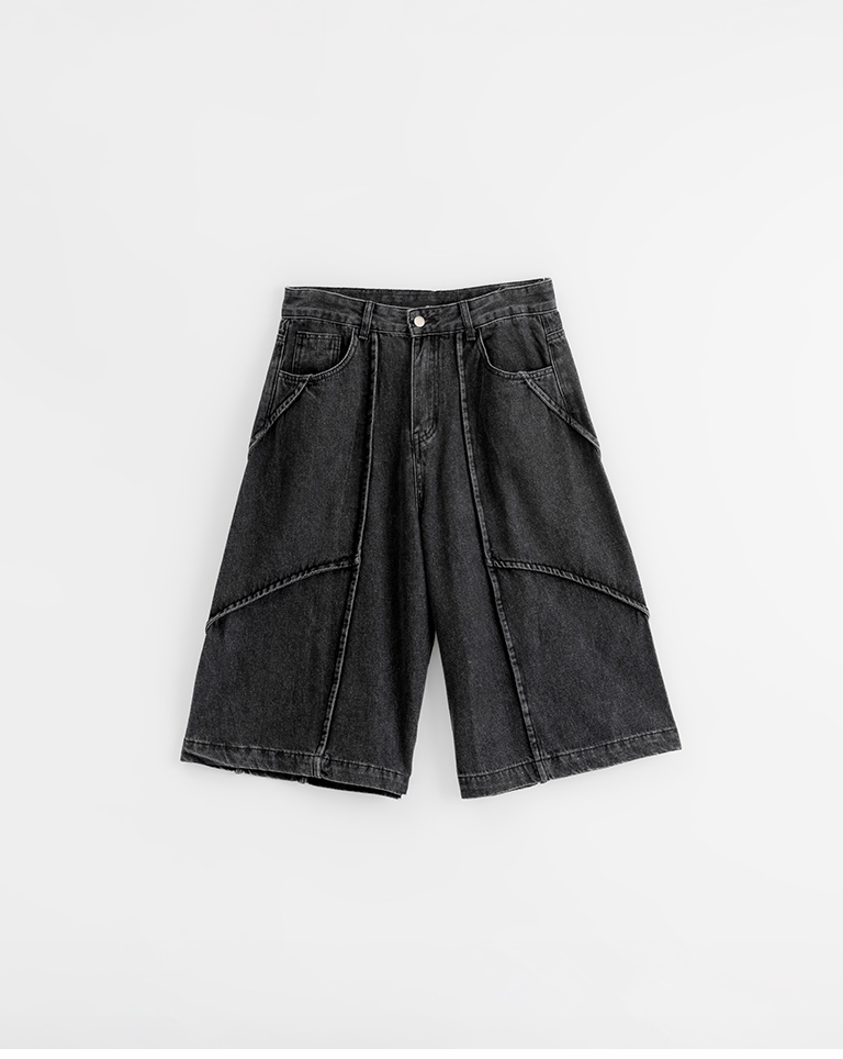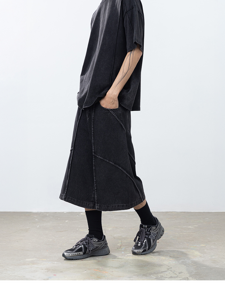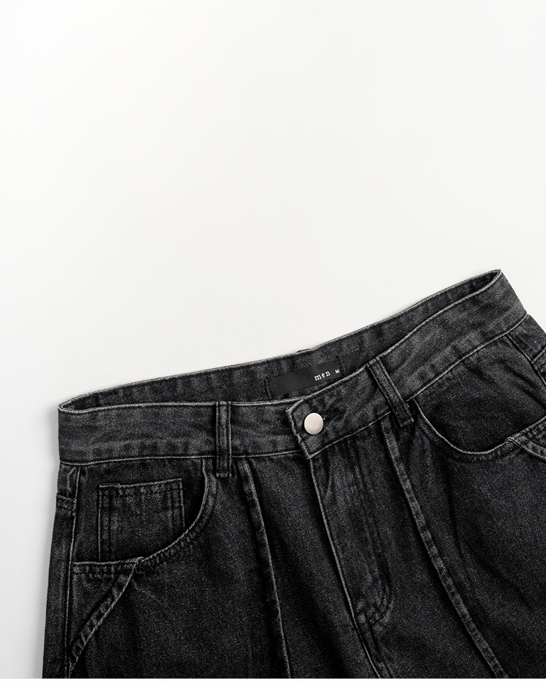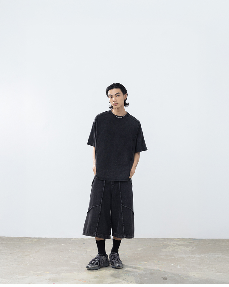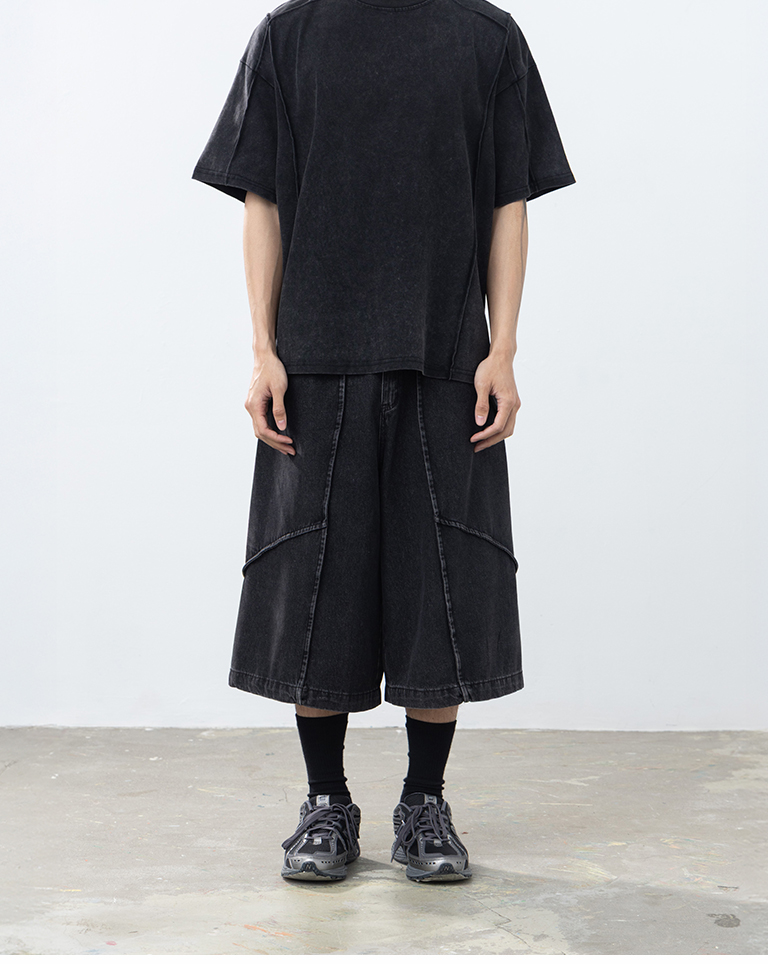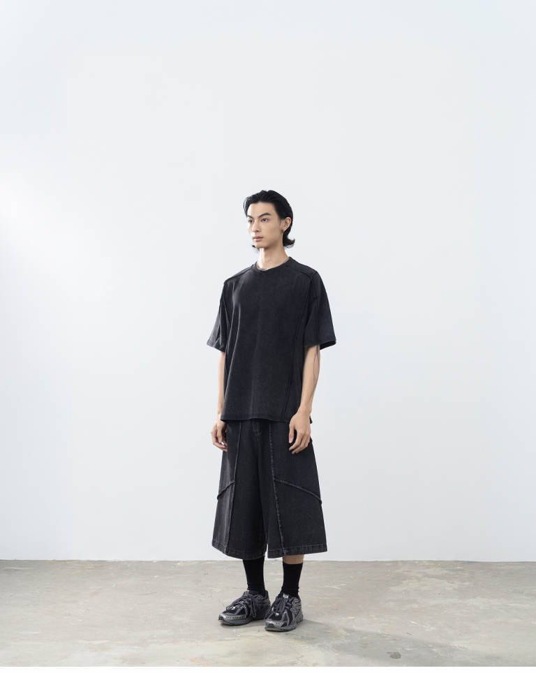 男裝 立體剪接洗水設計牛仔七分褲M/L/XL