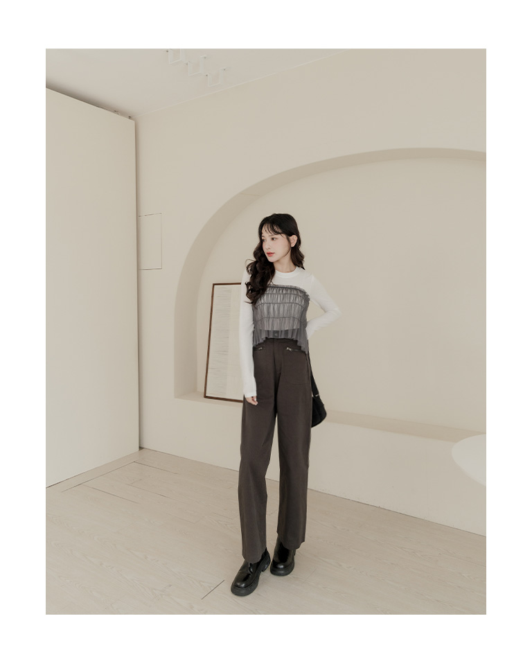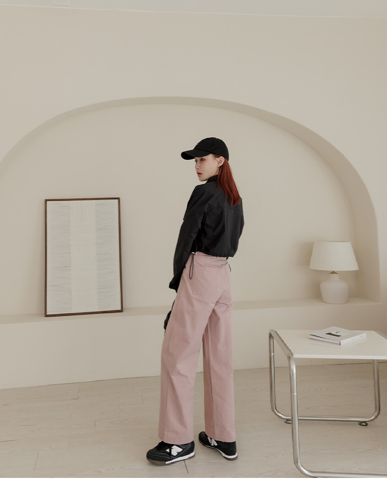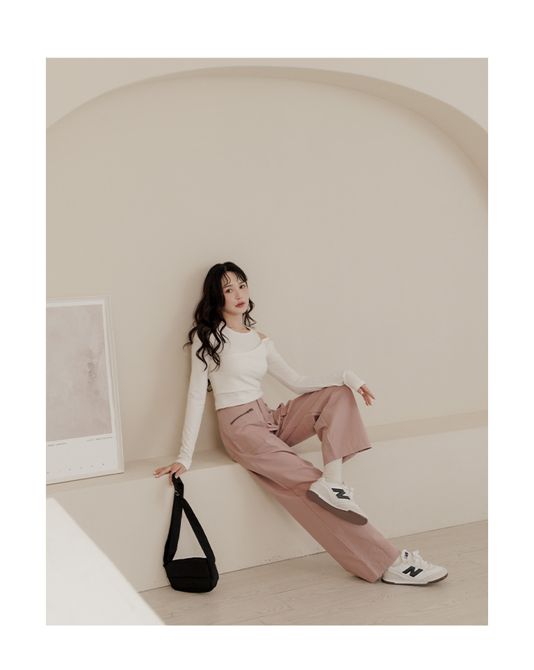 拉鍊口袋造型寬版長褲 兩色售 S/M/L