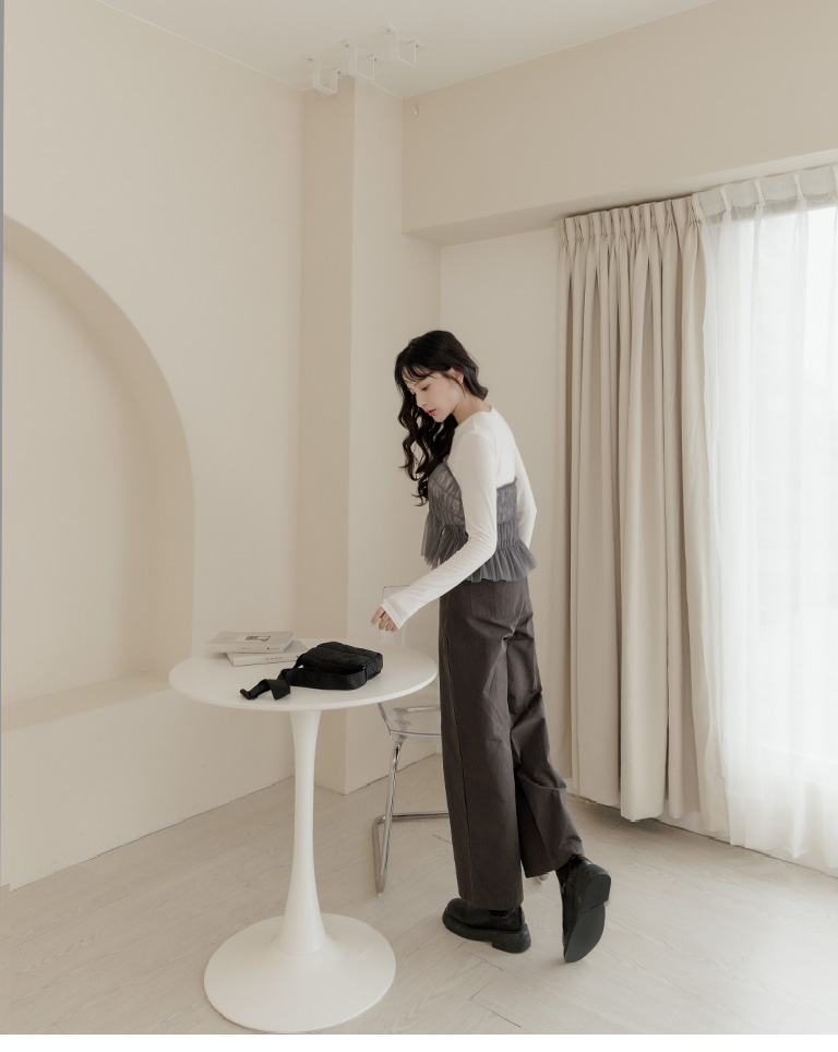 S~L身形實測!分尺寸皺皺木耳邊透膚高領長袖上衣