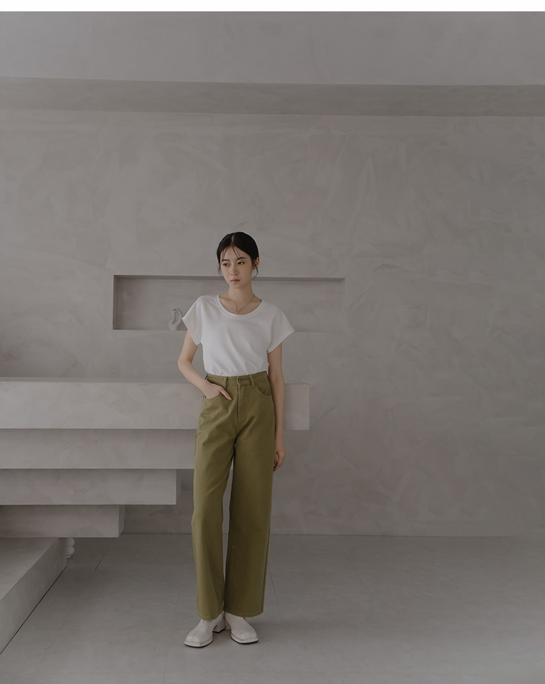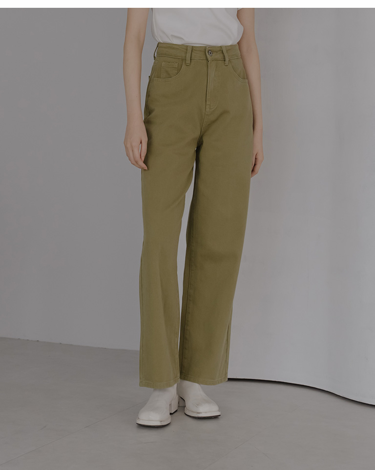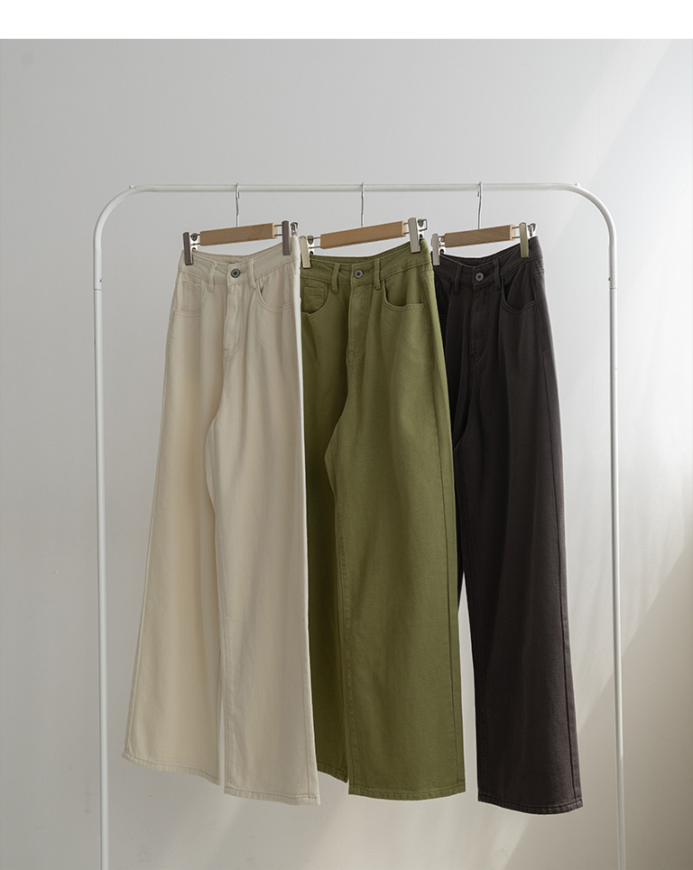 高腰百搭斜紋直筒寬褲-綠S/M/L