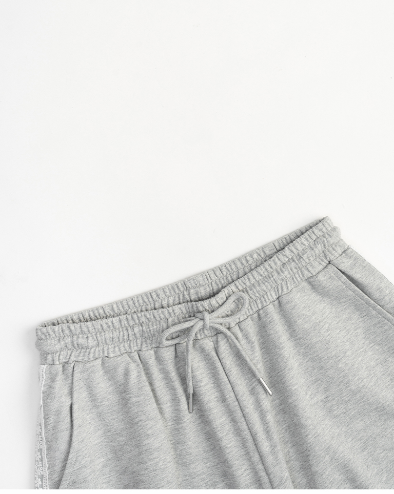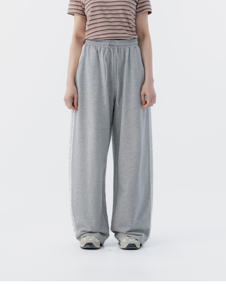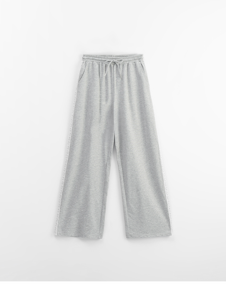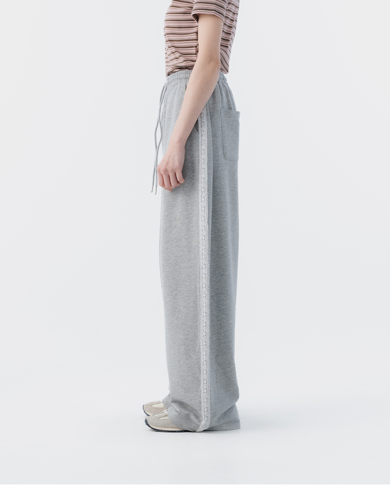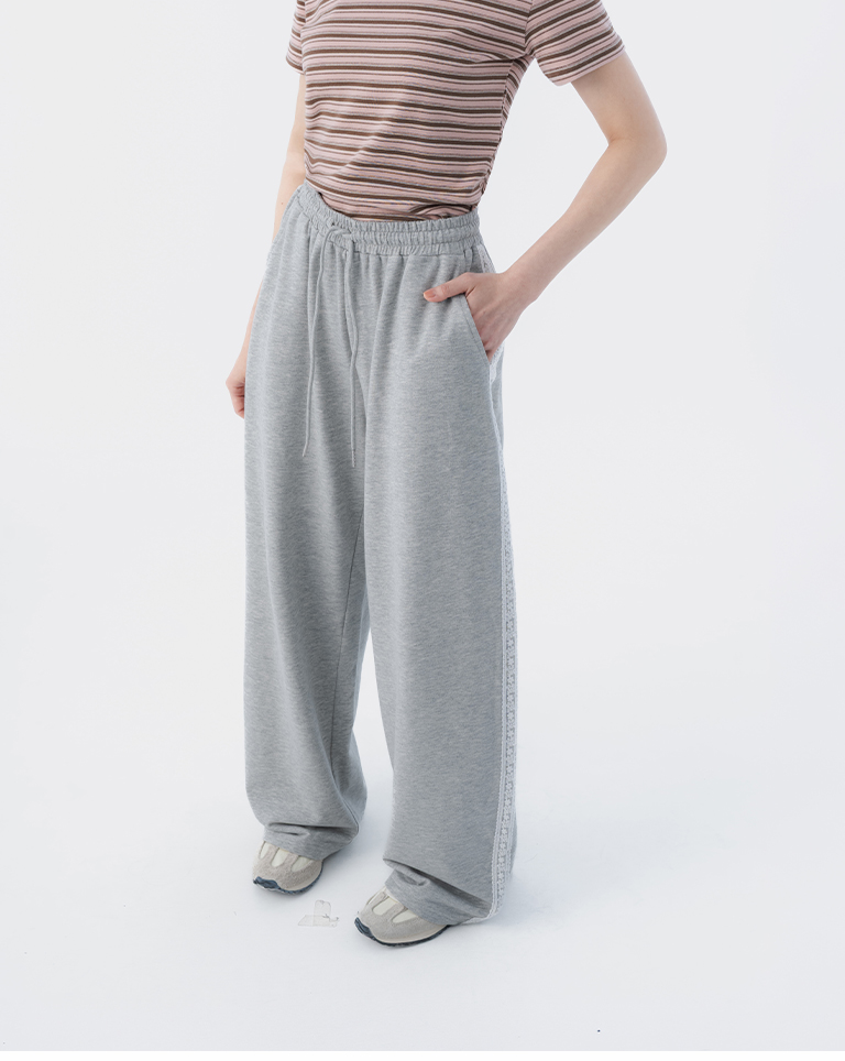 蕾絲剪接設計繭型棉質長褲