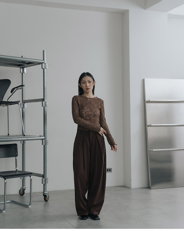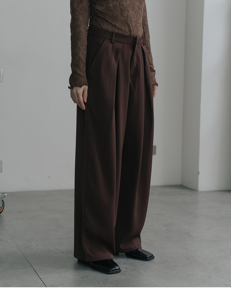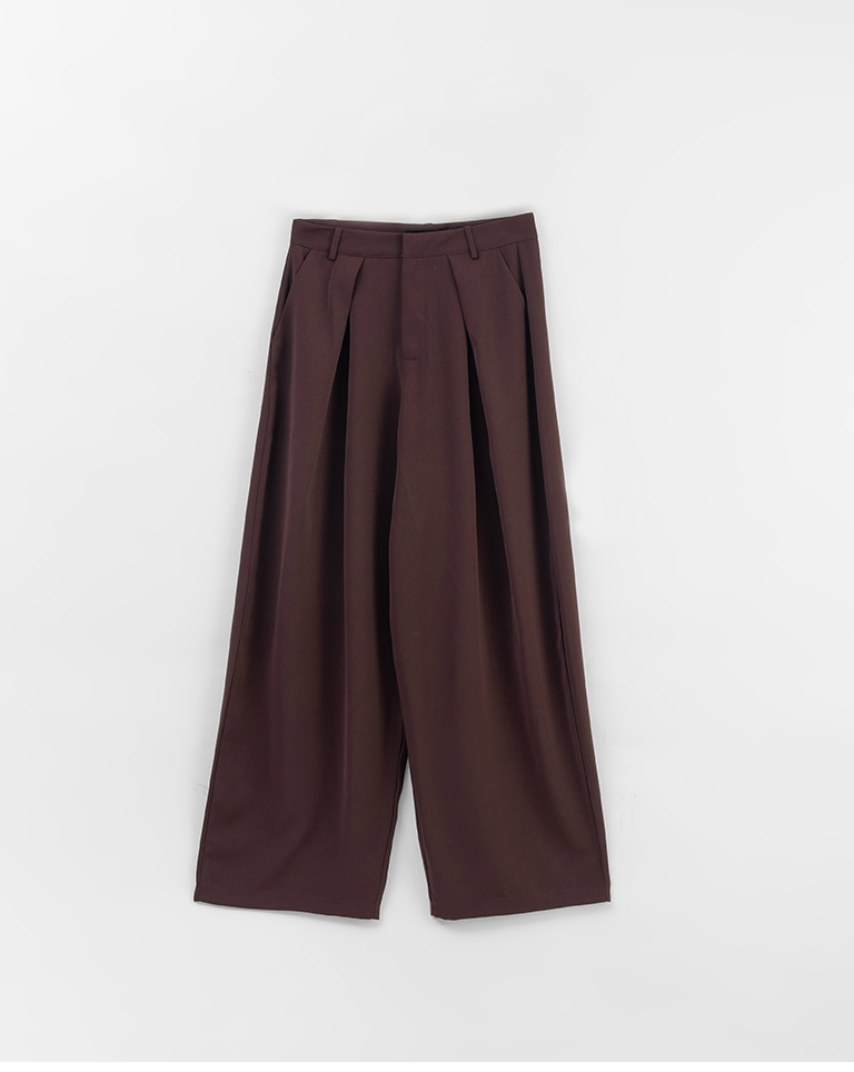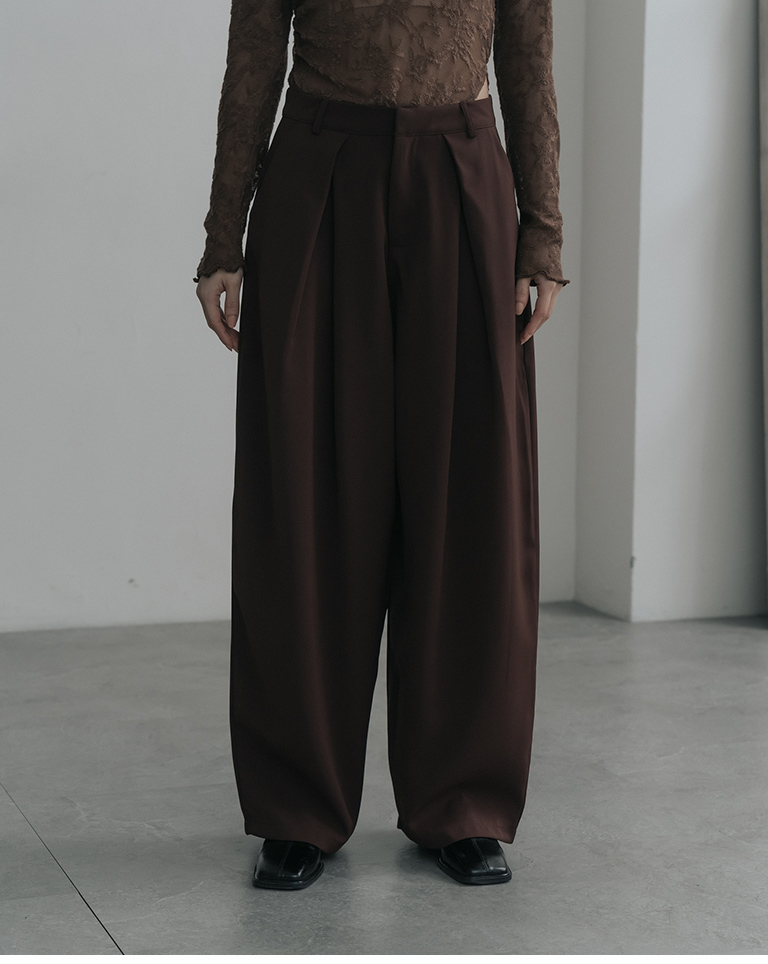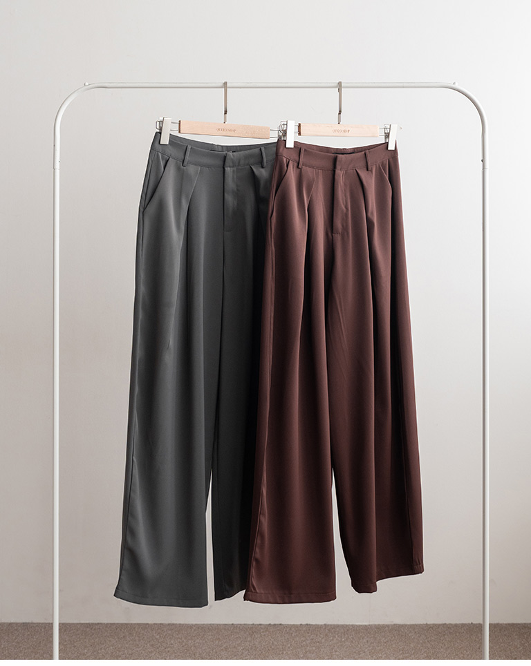簡約打褶低腰繭型西裝長褲-咖啡 S/M/L