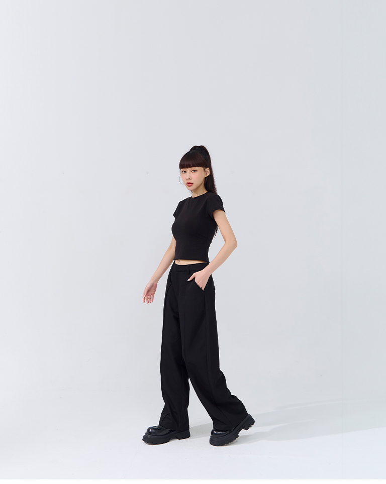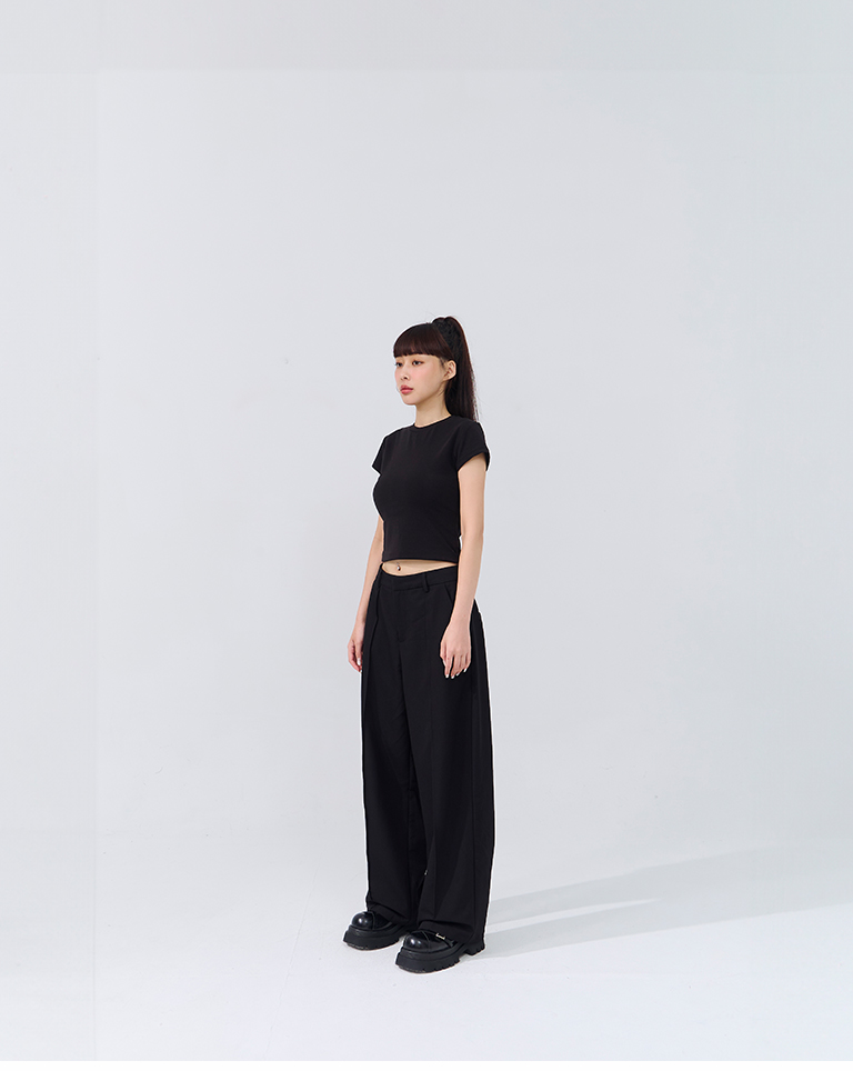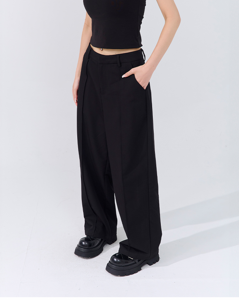 立體褶線低腰西裝長褲-黑 S/M/L